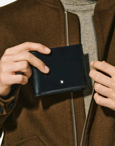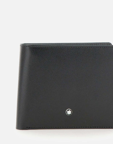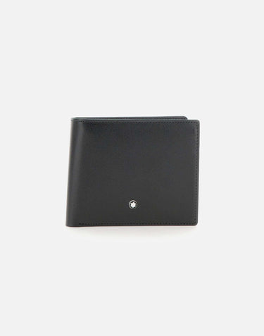Montblanc "Meisterstück" leather wallet, black, card slots, coin case with flap and two additional compartments for banknotes, embossed logo inside, logo on the front, dimensions: 11.5 x 2.5 x 9 cm. Made in Italy.