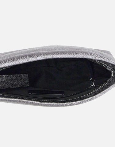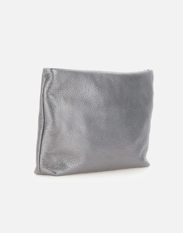 Gianni Chiarini "Brenda" hammered leather handbag, grey, zip closure, silver plating, adjustable and removable shoulder strap approx. 90cm, chain handle for shoulder portability, internal pockets, dimensions height 20cm, length 30cm, depth 5cm, dust bag included.