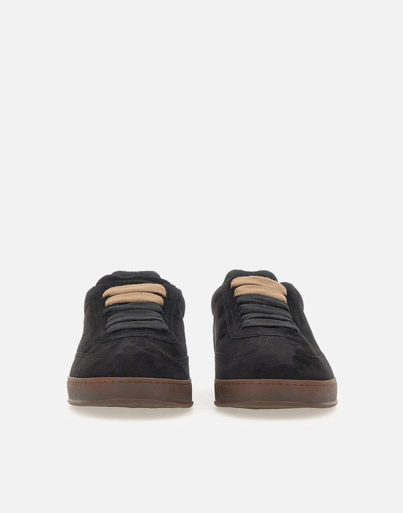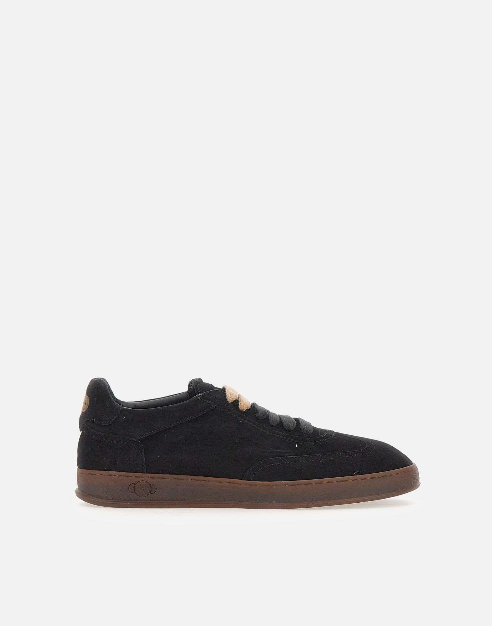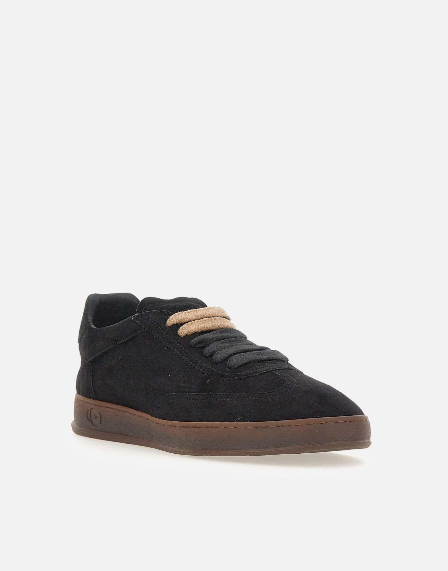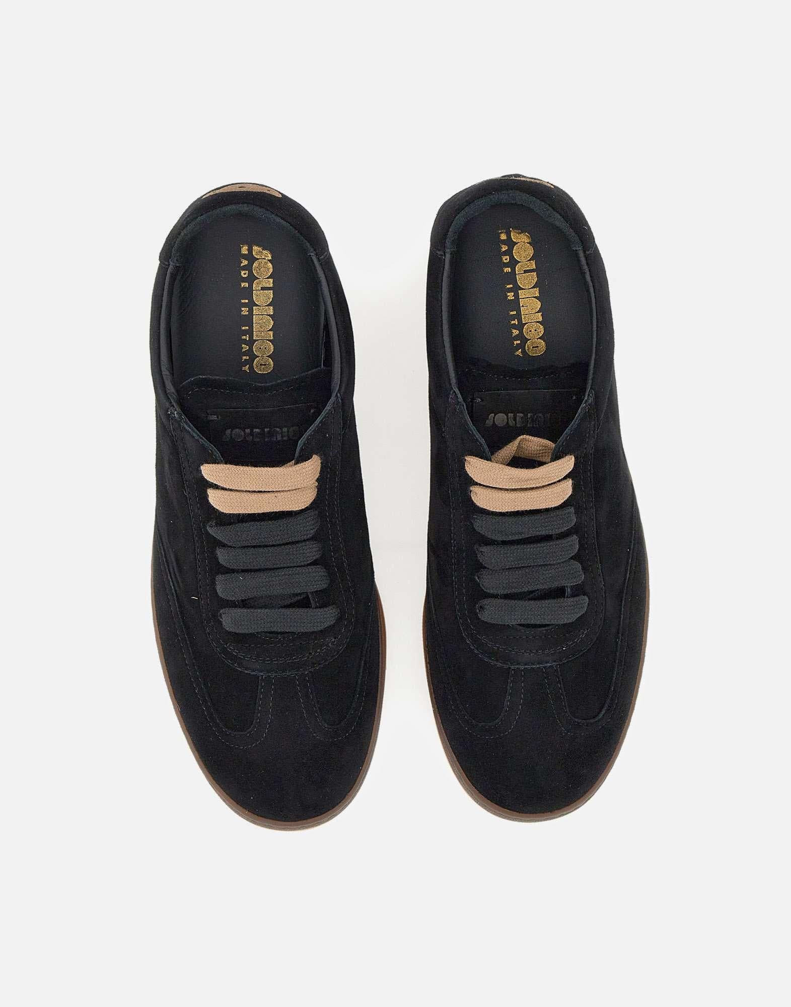 Soldini 80 "Akira Amalfi" men's sneakers in soft, all-black suede. Featuring a removable, leather-lined footbed and a 3cm ultra-lightweight rubber outsole for maximum comfort all day long. Versatile design, perfect for both work and leisure. Embroidered logo on the back. Two-tone laces. Handcrafted in Italy. Regular fit. Fabric case included.