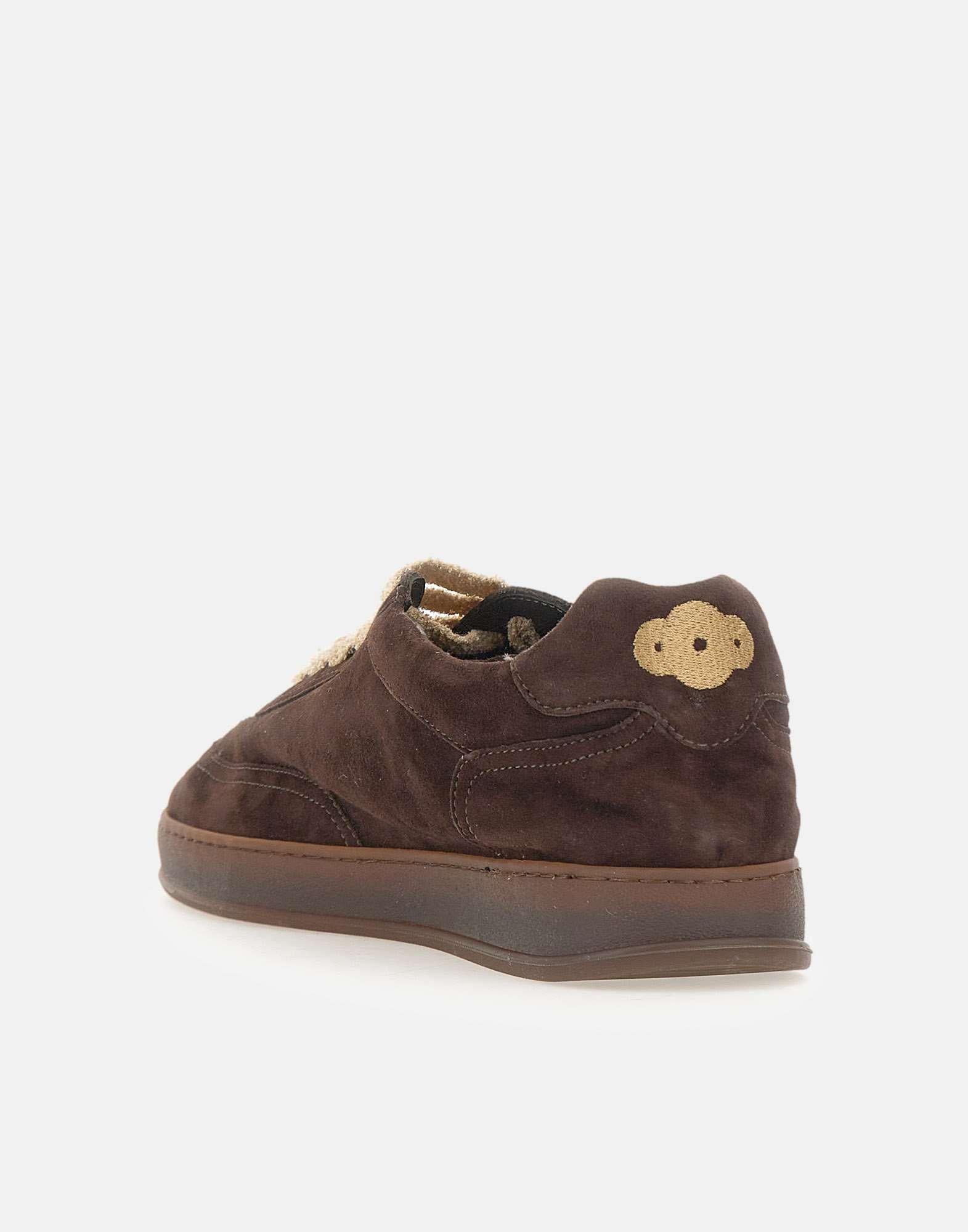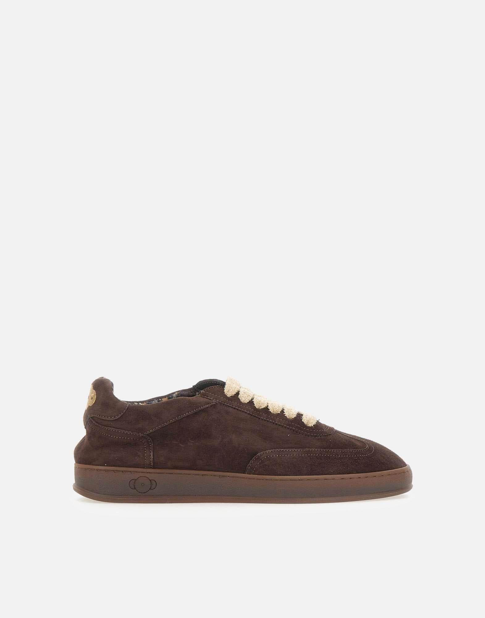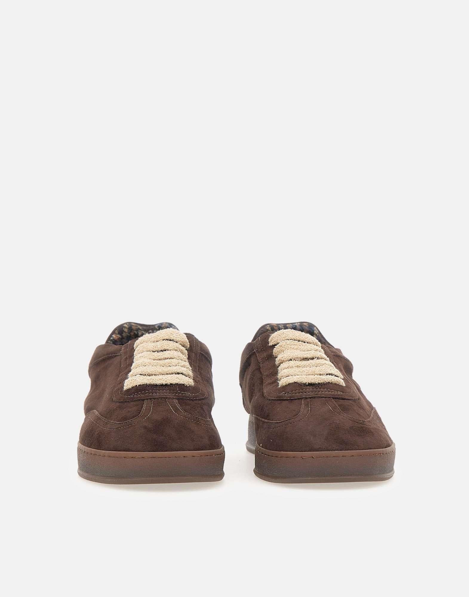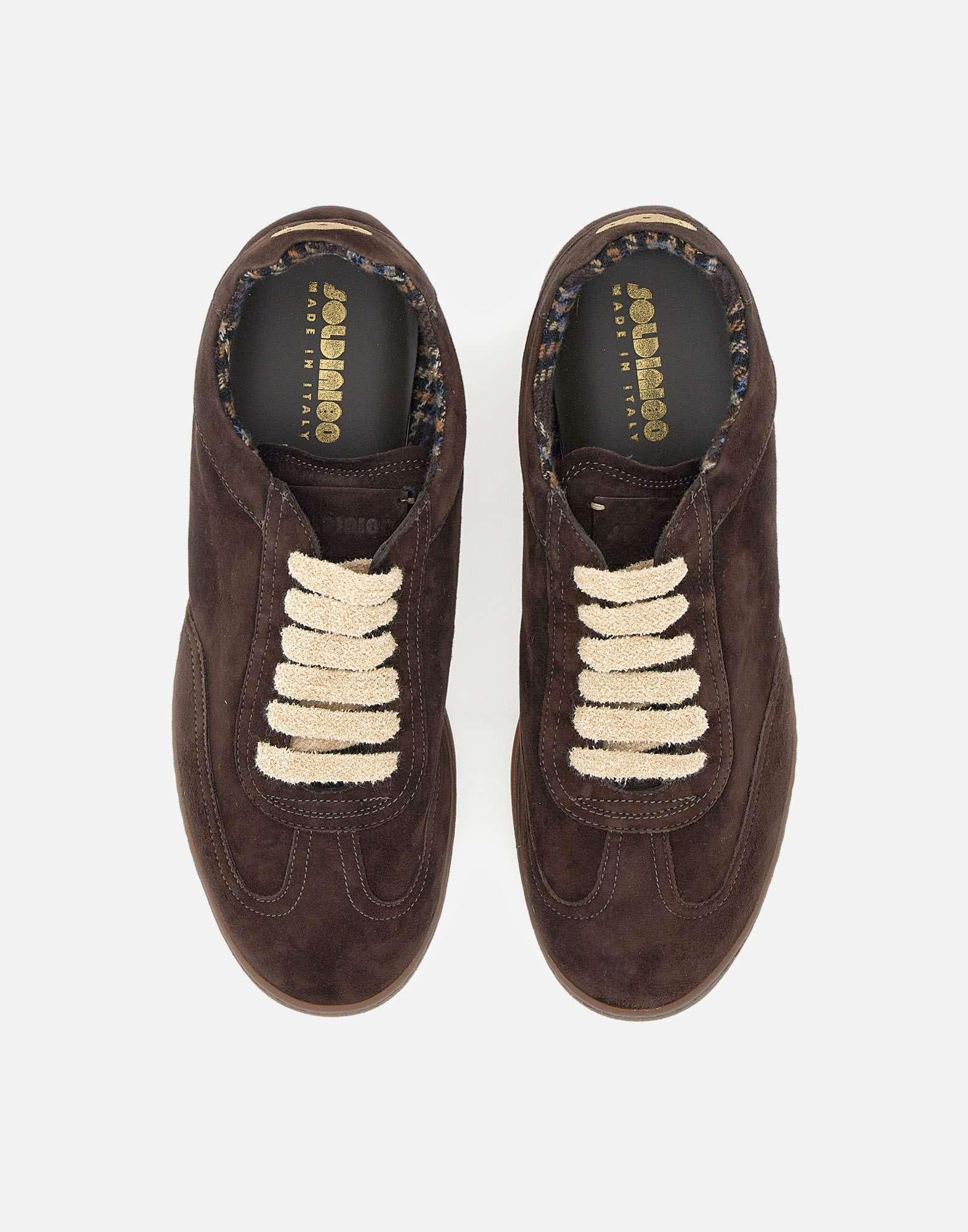Soldini 80 "Akira Amalfi" men's sneakers in soft dark brown suede. Featuring a removable leather-lined footbed and a 3cm ultra-lightweight rubber outsole for maximum comfort all day long. Versatile design, perfect for both work and leisure. Embroidered logo on the back. Contrasting laces. Multicolored houndstooth fabric interior. Handcrafted in Italy. Regular fit. Fabric case included.