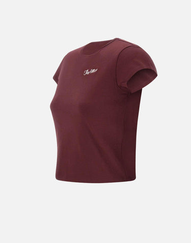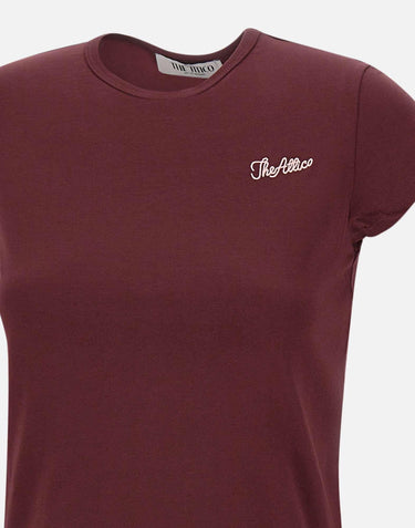 The Attico women's purple cotton t-shirt with short sleeves, crew neck, and embroidered logo on chest. Regular fit.