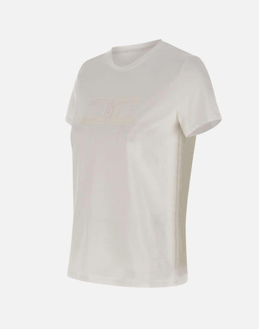 Elisabetta Franchi cotton jersey T-shirt, white color, short sleeves, crew neck, double embroidered logo embossed on front, regular fit, made in Italy