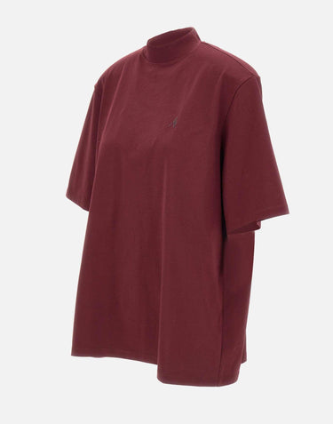 The Attico pure cotton T-shirt refined wine shade. The essential design is enhanced by removable padded shoulders that give structure to silhouette, short sleeves,crew neck and an embroidered logo on chest. Oversized fit.