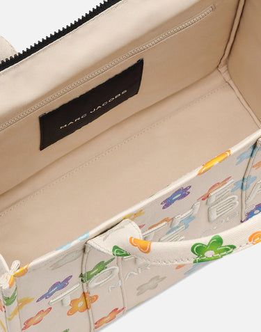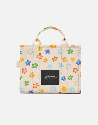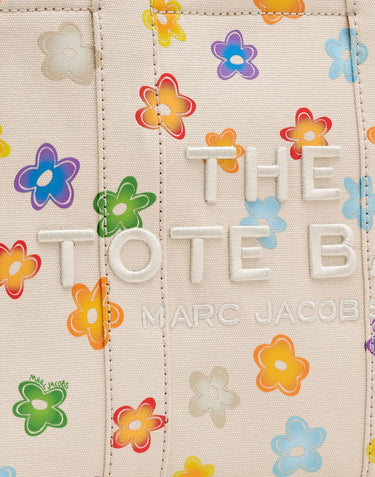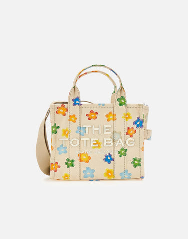 Bolso The Small Tote hand bag Marc Jacobs, canvas, multicoloured flower pattern, double top handle, embossed logo, logo on back, zip fastening, adjustable and removable shoulder strap approx. 90 cm, silver galvanic, measurements: 26x13x21, dustbag included.