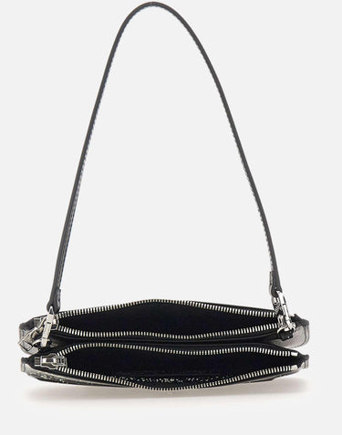 Diesel "1dr twin" shoulder bag, black and white, double construction, adjustable and removable shoulder strap approx. 90cm, removable top handle, two zipped compartments, silver plating, internal pocket, fabric case included, maxi logo embossed, dimensions: 21x16x4