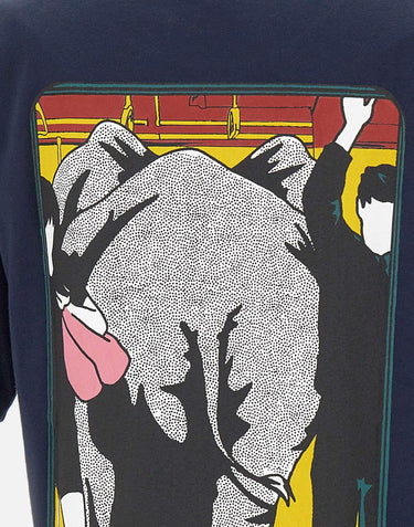Cotton "City t-shirt" men's Kenzo Paris, blue, short sleeves, crew neck, multicolor graphic print on front and back, regular fit