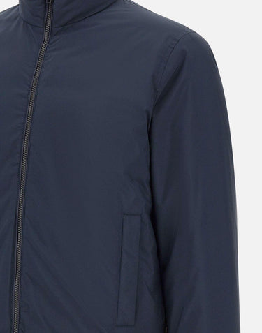 Cloud lewis bomber jacket Woolrich men's, blue, down filled, RDS (Responsible Down Standard) certified, windproof and water resistant fabric, protection rating 32°f/0°c, recessed cuffs, elasticated hem, inside pocket, zipped side pockets, two-way zip fastening, regular fit.
