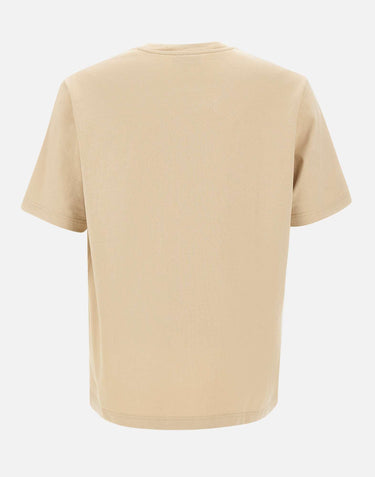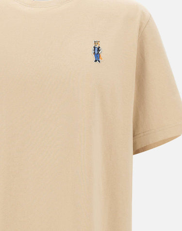 "Standing Fox" t-shirt by Maison Kitsunè, sand, 180g cotton jersey, short sleeves, crew neck, embroidered patch on chest, comfortable fit