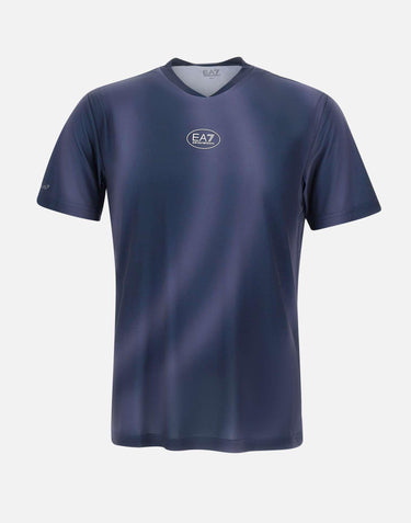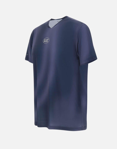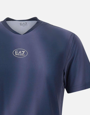 EA7 "Tennis Pro" t-shirt, purple blue, short sleeves, crew neck, in Ventus7 technical fabric, breathable and ultra comfortable, perfect for sports with optimal ventilation, logos on chest and sleeve, slim fit
