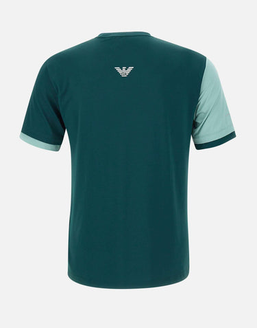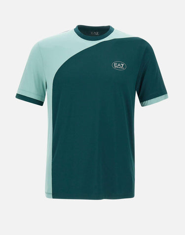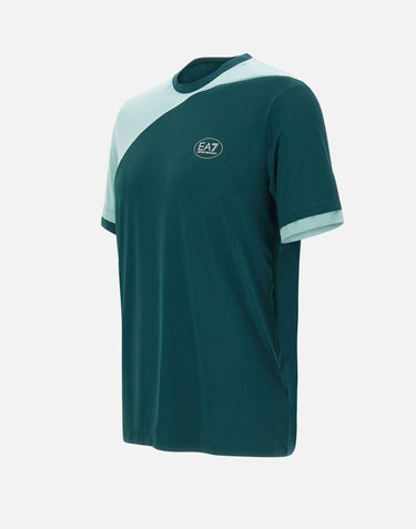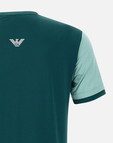 EA7 "Tennis Pro" t-shirt, double green color, short sleeves, crew neck, Ventus7 technical fabric, breathable and ultra comfortable, perfect for sports with optimal ventilation, color block effect, logos on chest and sleeve, slim fit