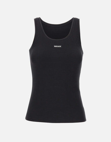 "Basic tank top" Rotate Birger Christensen, black, cotton, ribbed knit, contrasting mini logo on centre front, regular fit