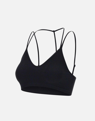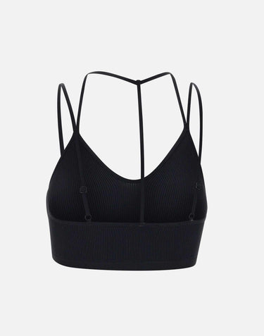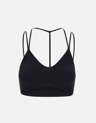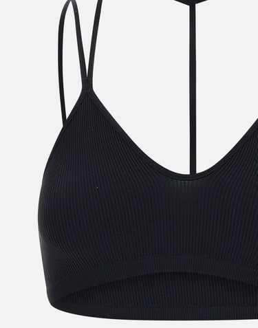 Andreadamo Ribbed jersey bralette, black, ribbed weave, adjustable straps, V-neck, double sizes, made in Italy