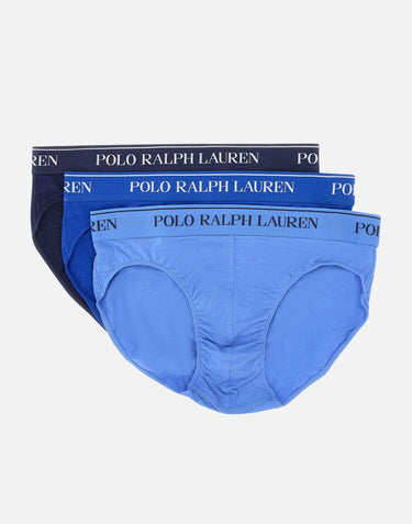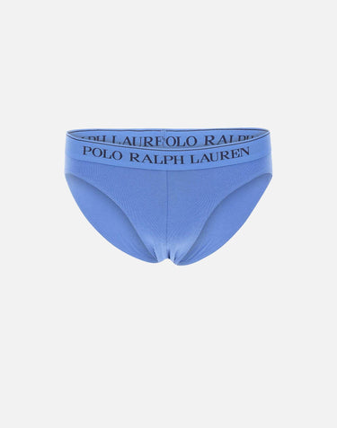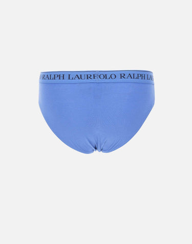 Polo Ralph Lauren "Core Replen" Tripack stretch cotton men's briefs, multicolor shades of blue and light blue, elasticated waist with contrasting color logo, low rise, regular fit.