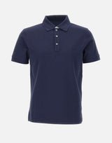 Fay men's navy blue stretch piquet cotton polo shirt, short sleeves, classic double-coloured collar closed by matching buttons, contrasting inner sleeve edge, embroidered logo on chest, slim fit