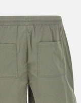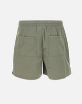 "Serif shorts" men's Represent, sage green grey, stretch cotton blend, extra comfort fabric, elasticated waist with drawstring, side pockets with zip, embroidered logo on hem, back pockets, regular fit