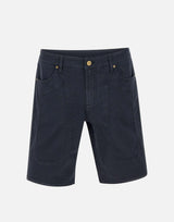 Jeckerson "Jayden" men's cotton shorts, dark blue, regular waist with belt loops, five-pocket model, zip closure and antiqued logoed buttons, mini logo embroidery on the front pocket, logo patch on the back, iconic seams on the legs, slim fit.