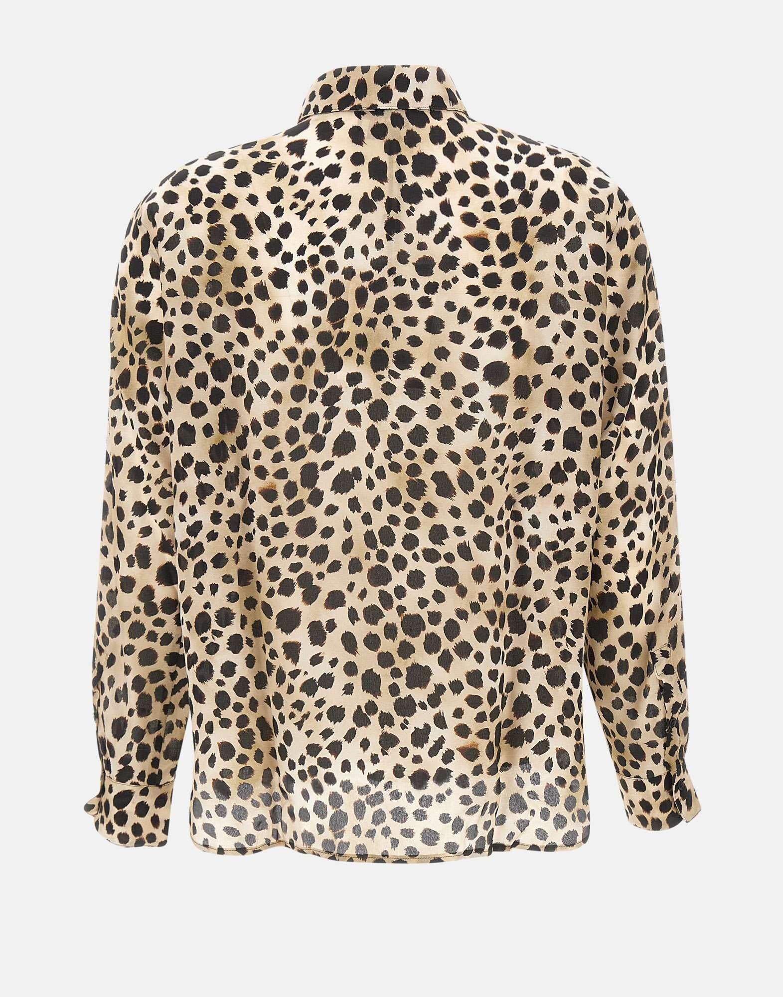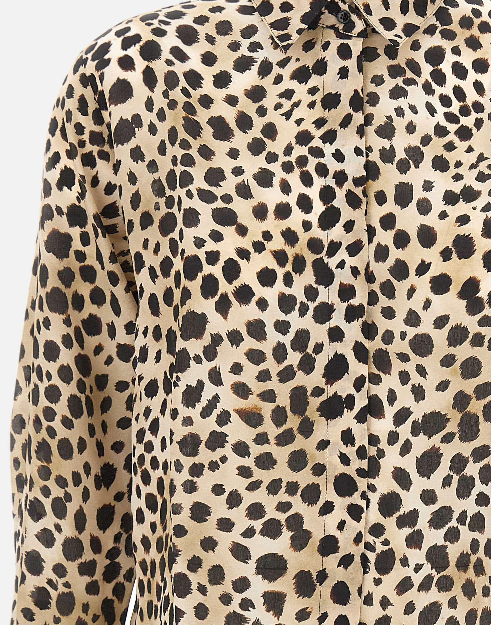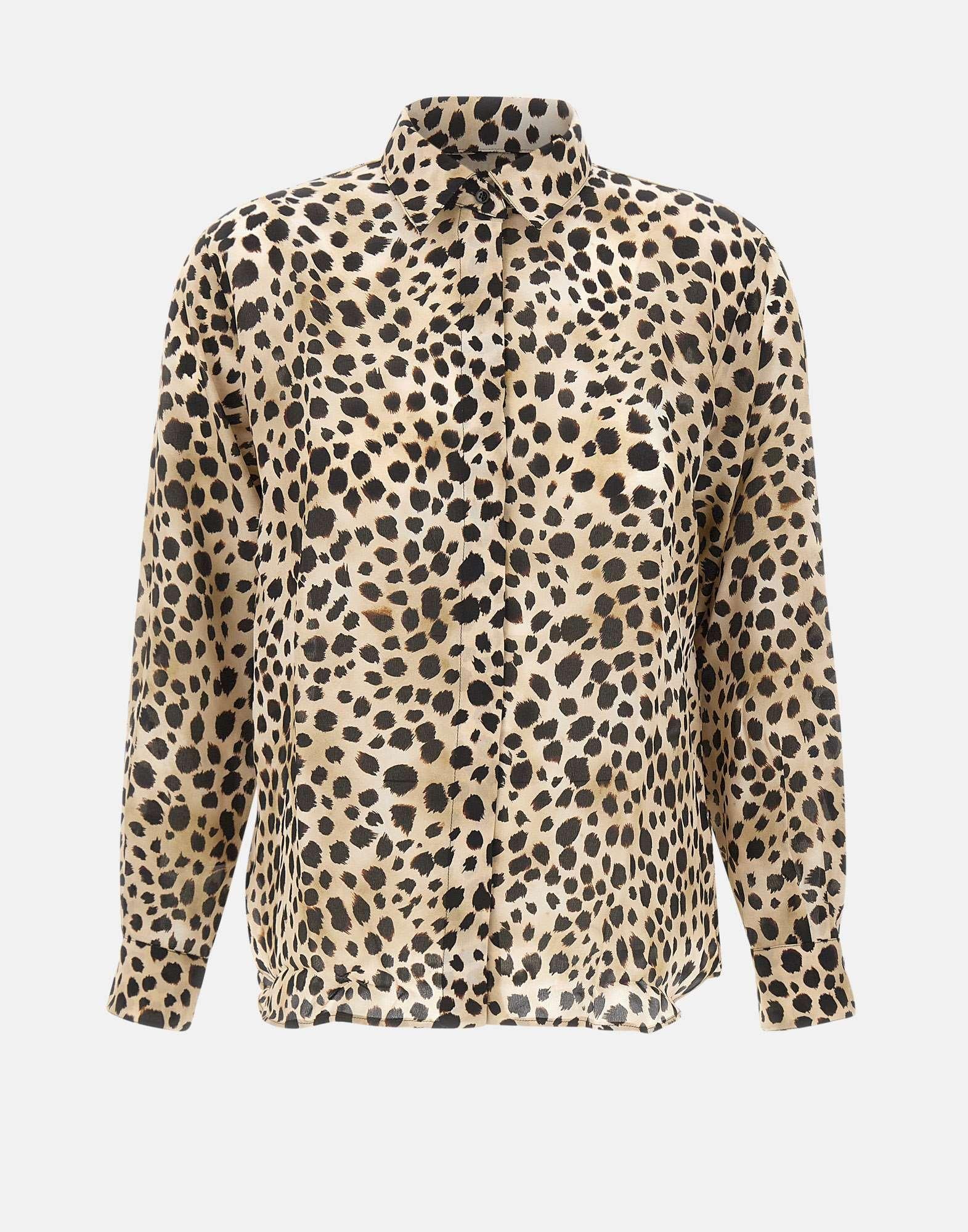 Marella "Faretra" shirt in pure silk, featuring an elegant spotted pattern in warm brown tones. The style features a classic collar, long sleeves with dual-use cuffs, a front closure with hidden buttons, and side slits at hem for added movement. Regular fit, perfect for sophisticated daytime or office looks.