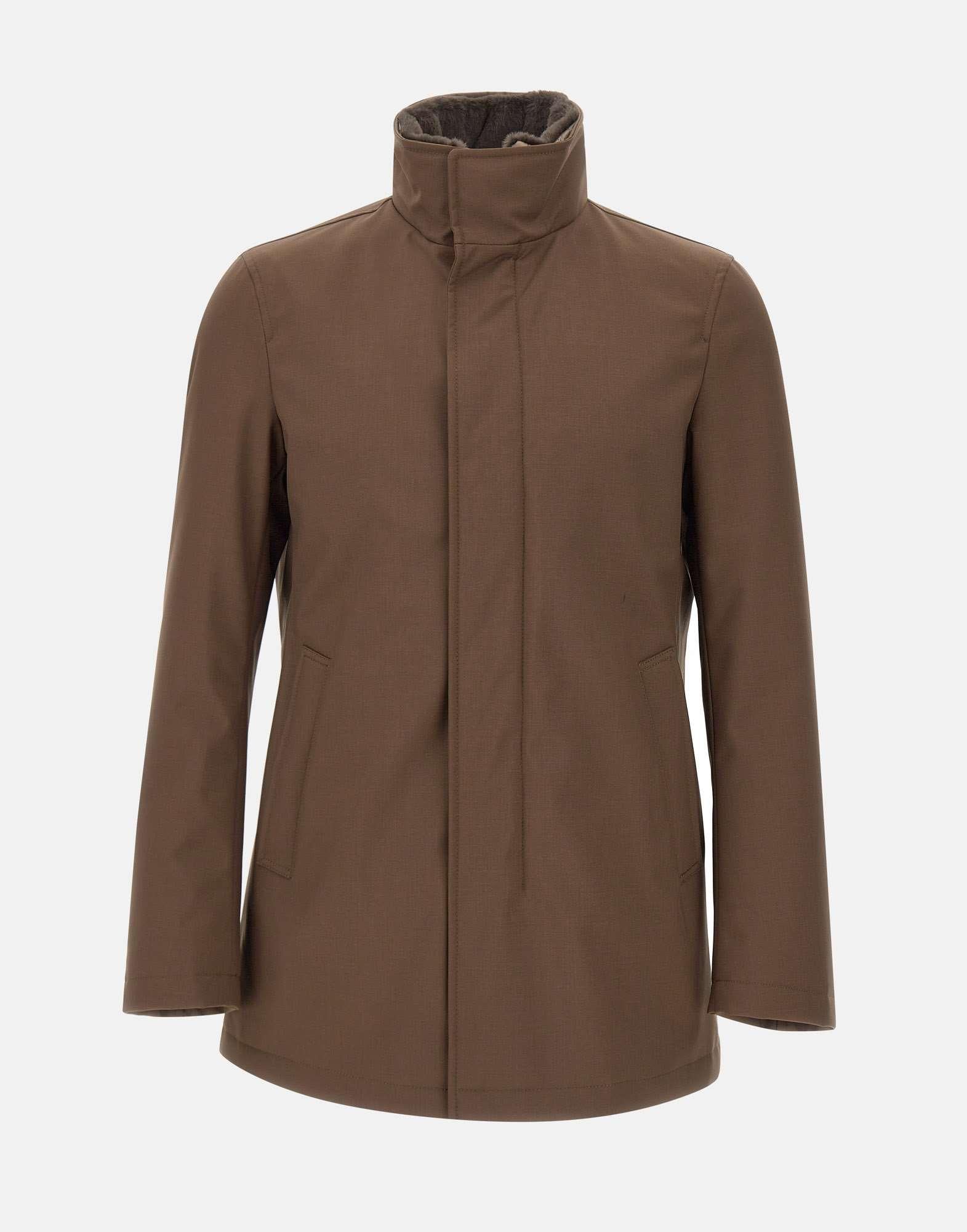 This Herno men's parka in an elegant chocolate brown shade strikes the perfect balance between style, functionality and sustainability. Made from an extra-comfortable fabric that is pleasant to the touch and comfortable to wear, it is ideal for facing winter with elegance and practicality. The stand-up collar is embellished with a removable faux fur insert, which adds a refined touch and protects against the cold on the harshest days. The double front closure with zip and buttons guarantees thermal insulation and security, while the super-warm eco-friendly padding offers high performance while respecting the environment. The design is completed by flush side pockets, functional internal pockets, a carefully detailed inner lining and a regular fit that ensures freedom of movement. All signed by the quality of Made in Italy.