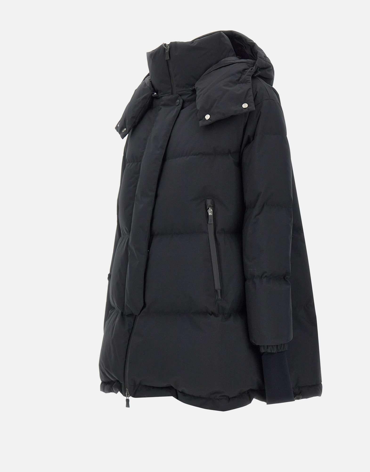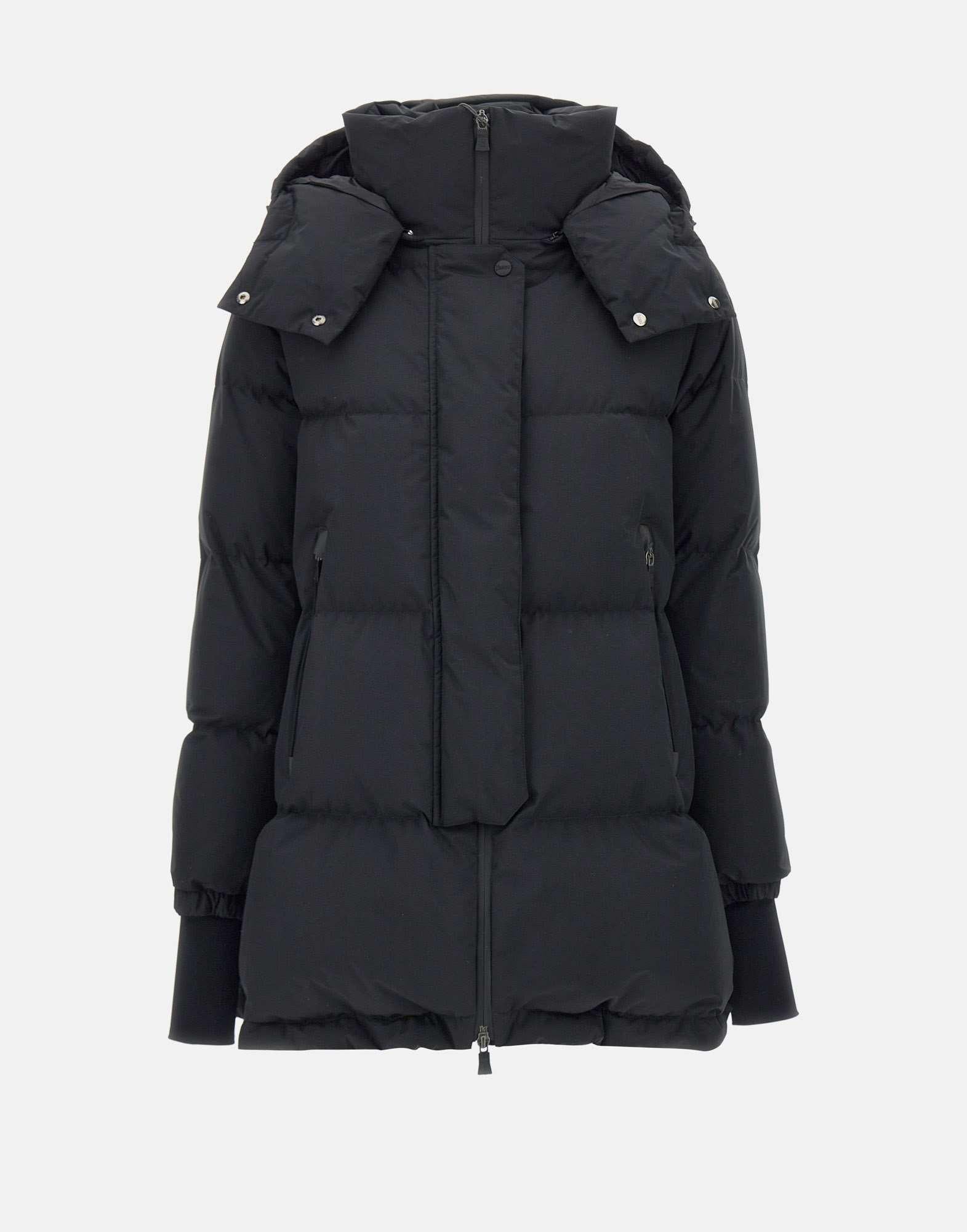 Herno women's down jacket, black, Functional Wardrobe, breathable and windproof Pro-Meteo technology, padded with feathers, warm and enveloping, removable hood with drawstring, double fastening with zip and buttons, side pockets with zip, cuffs with lycra insert, internal pockets, side zips at to facilitate fit, comfort fit