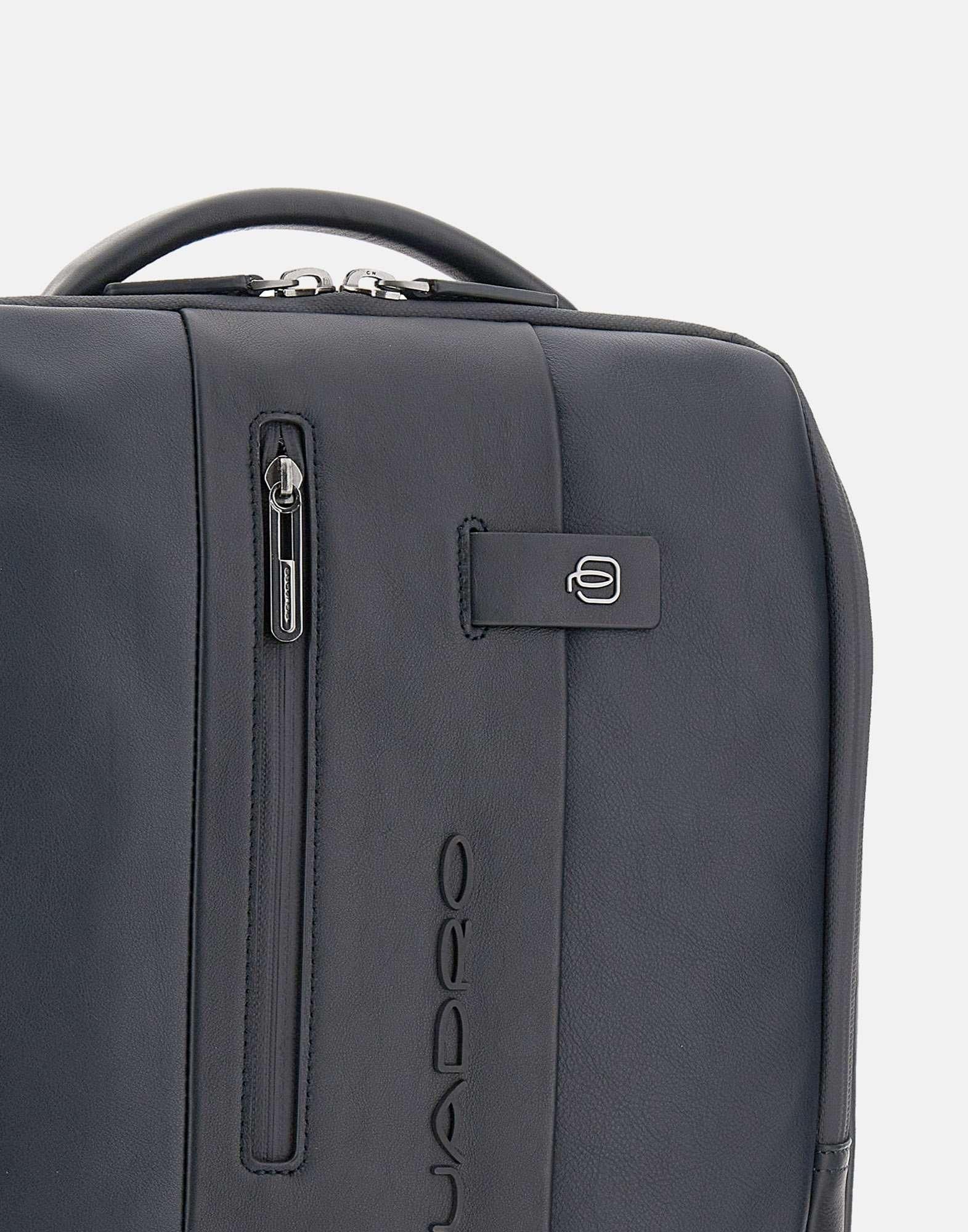 Piquadro "Blu Square" leather backpack, black, two large compartments closed by zip, fixed shoulder pad,