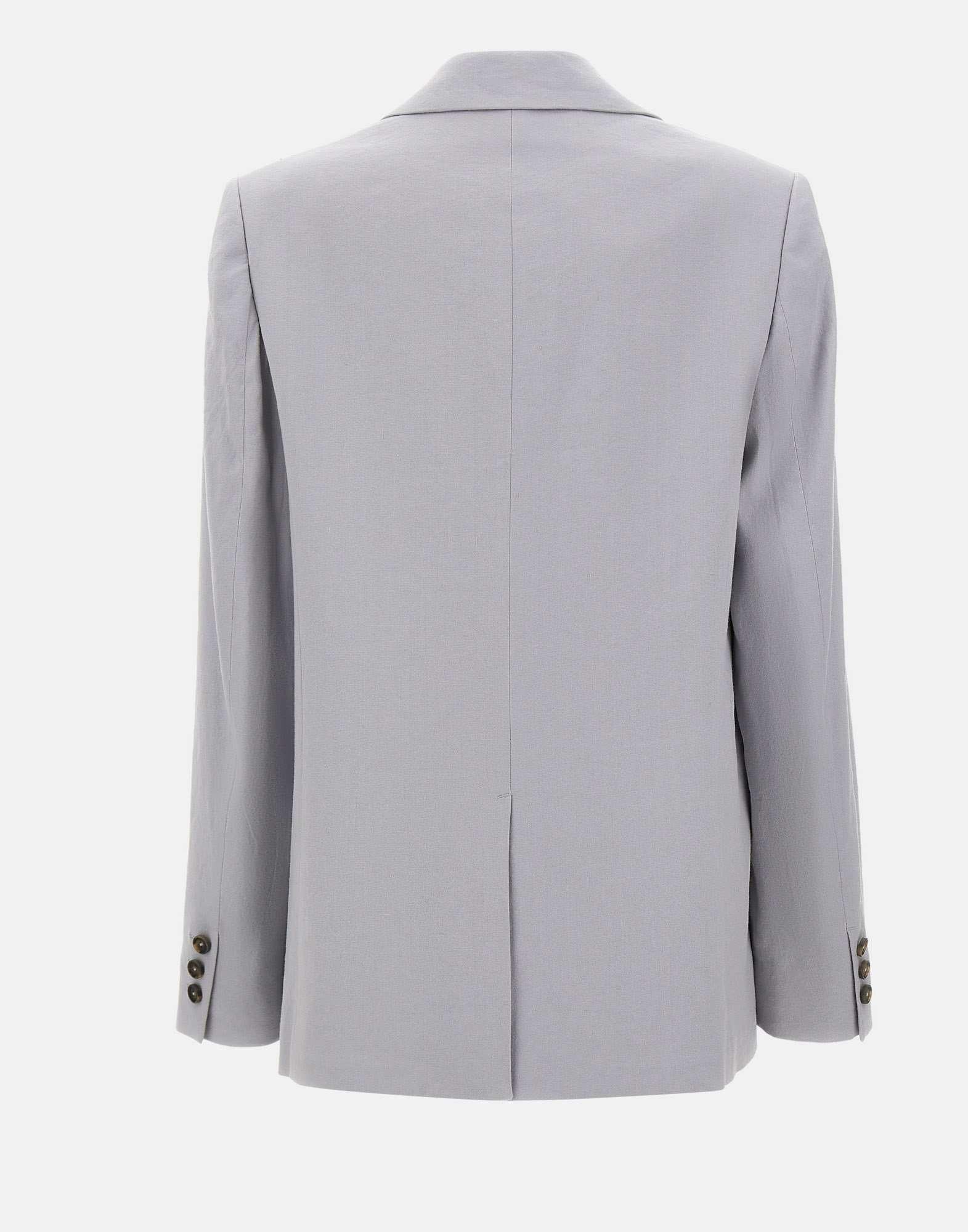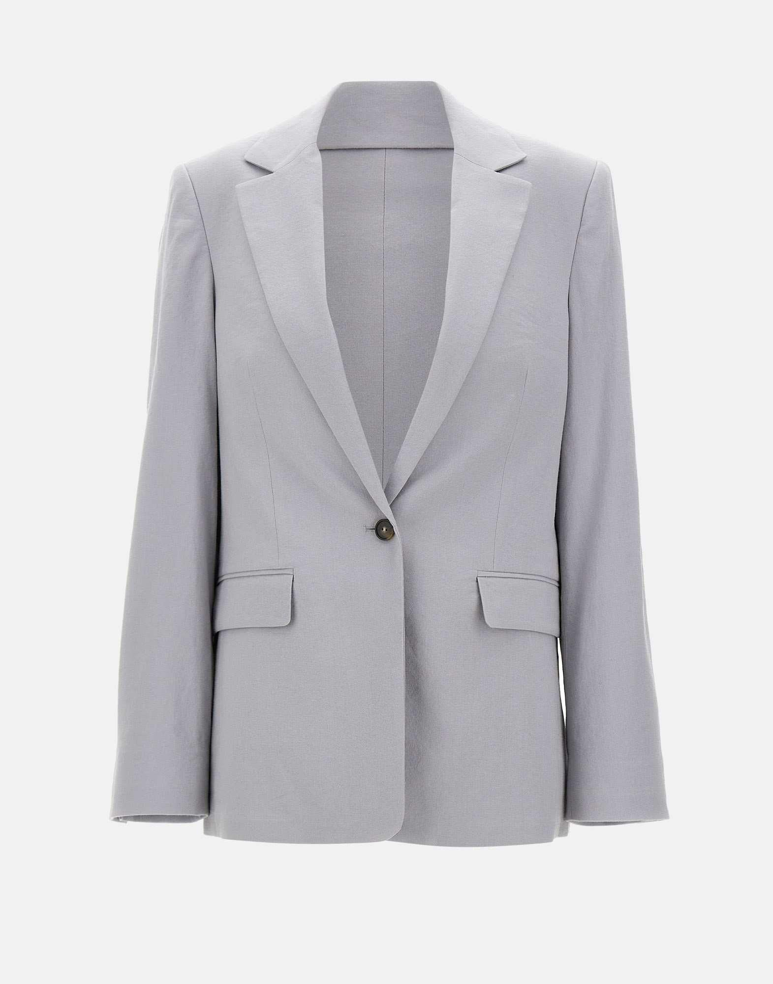 Vince. women's blazer crafted from lightweight and breathable linen blend in grey, designed with a long cut that enhances the silhouette with refined elegance. The single breasted style features a one button closure, classic lapels and two flap pockets that define a clean tailored aesthetic. The cuffs are finished with three buttons, while the central back vent allows ease of movement and comfort. The regular fit makes this blazer a versatile piece for polished and contemporary wardrobe combinations.