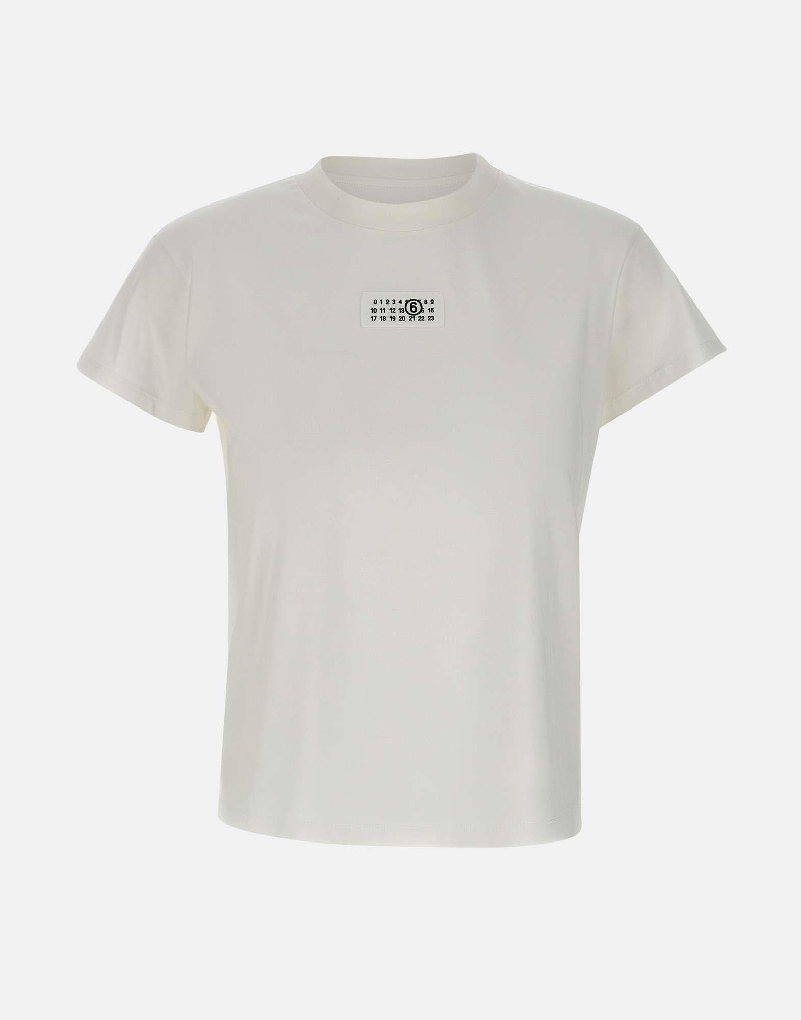 MM6 Maison Margiela women's T-shirt, white, cotton jersey, short sleeves, crew neck, MM6 brand numeric signature on front, regular fit