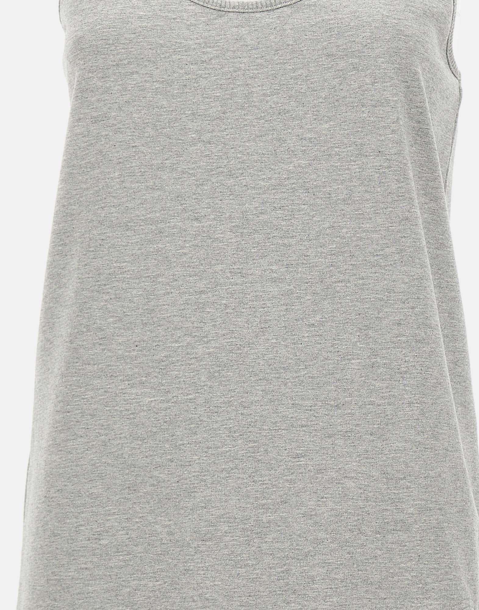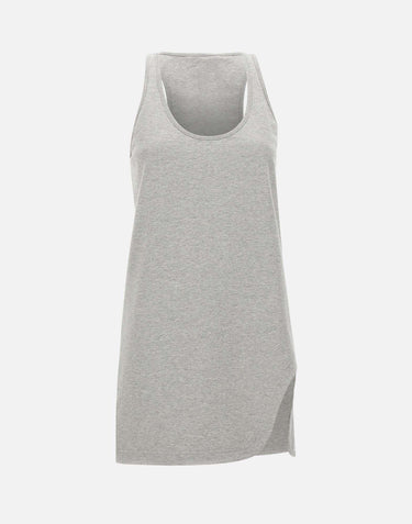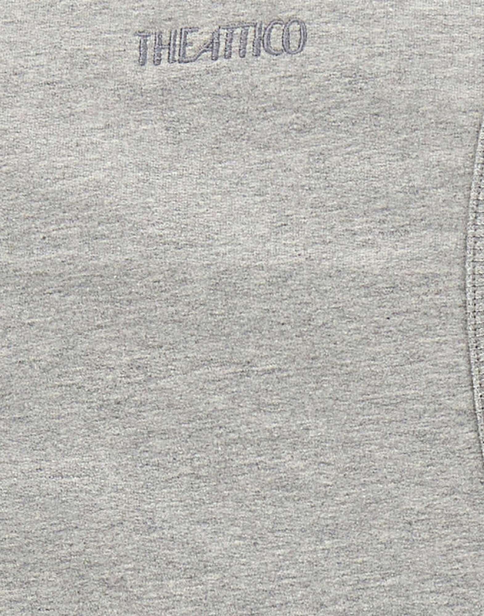 The Attico short dress in grey melange American fleece cotton, featuring a clean silhouette with the brand's signature geometric slit. Designed with wide armholes, round neckline, and tonal embroidered logo on the back. Regular fit for a refined yet sporty aesthetic.