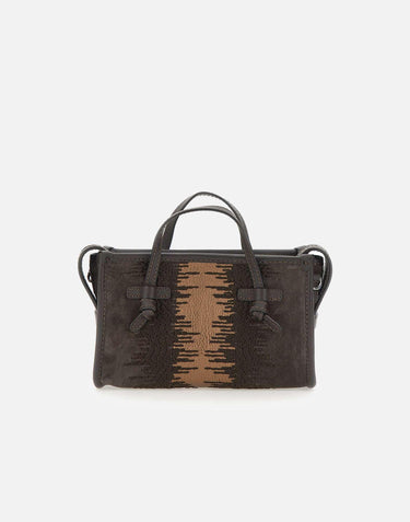 Marcella Gianni Chiarini, mocha and bornzo colour, mix of suede and grain leather with shaded effect and tone-on-tone embroidery inserts, single compartment with zip closure, galvanic silver, double top handle, adjustable and removable shoulder strap approx. 100cm, logo label on side, made in Italy , dustbag included, measurements: 23 cm length, 8.5 cm depth, 13.5 cm height