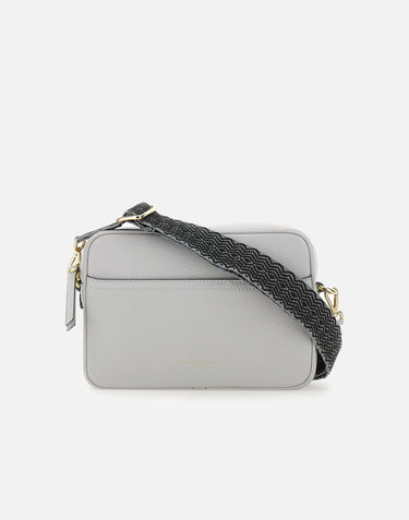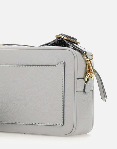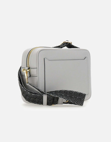 Gianni Chiarini "Nina" shoulder bag hammered leather, ice color, top zip closure, external gold logo, removable shoulder strap included 90cm, gold hardware, external slip pockets front and back, internal zip pocket, measurements length 25cm at base, height 18cm, depth 8cm. Dust bag included. Made in Italy.