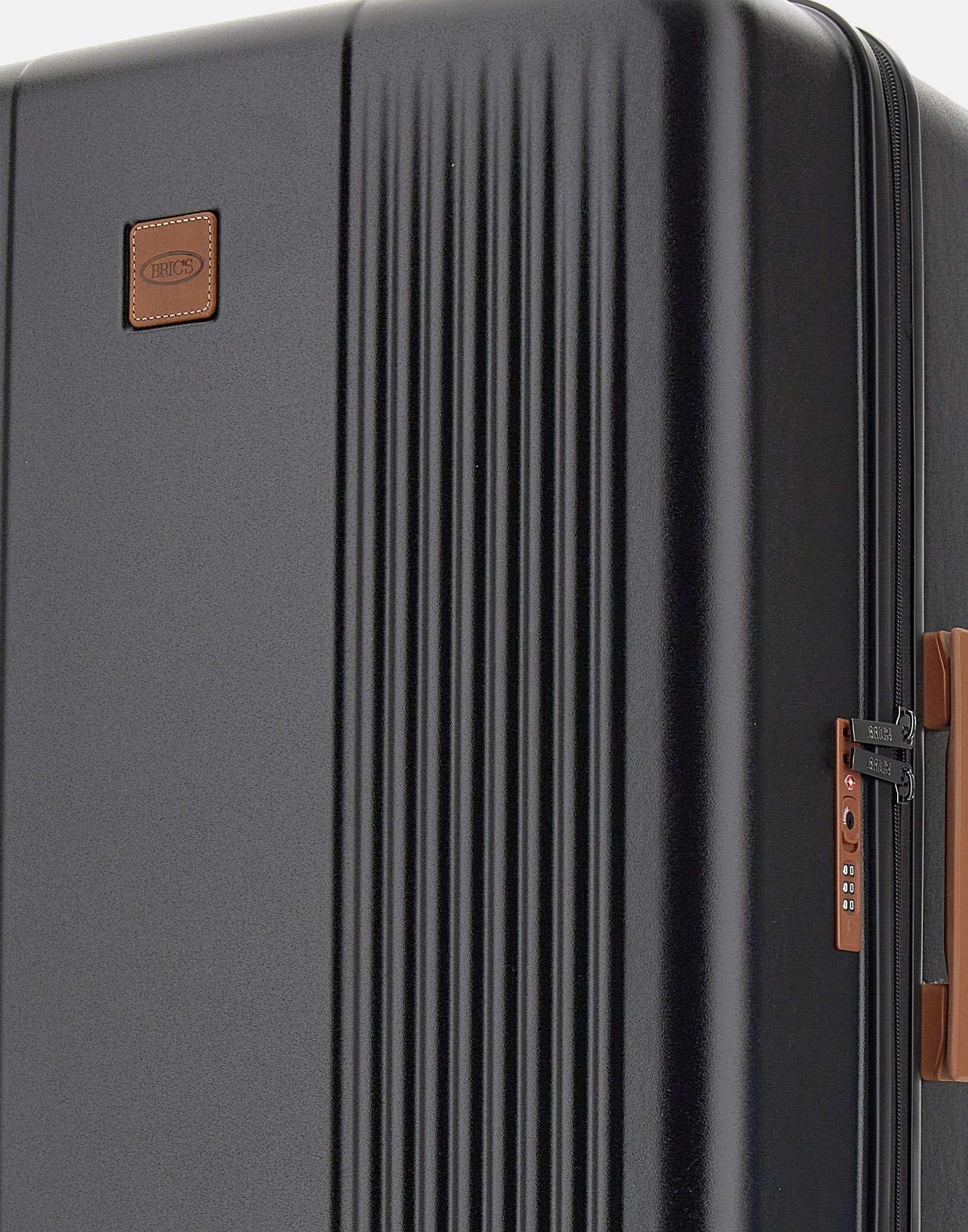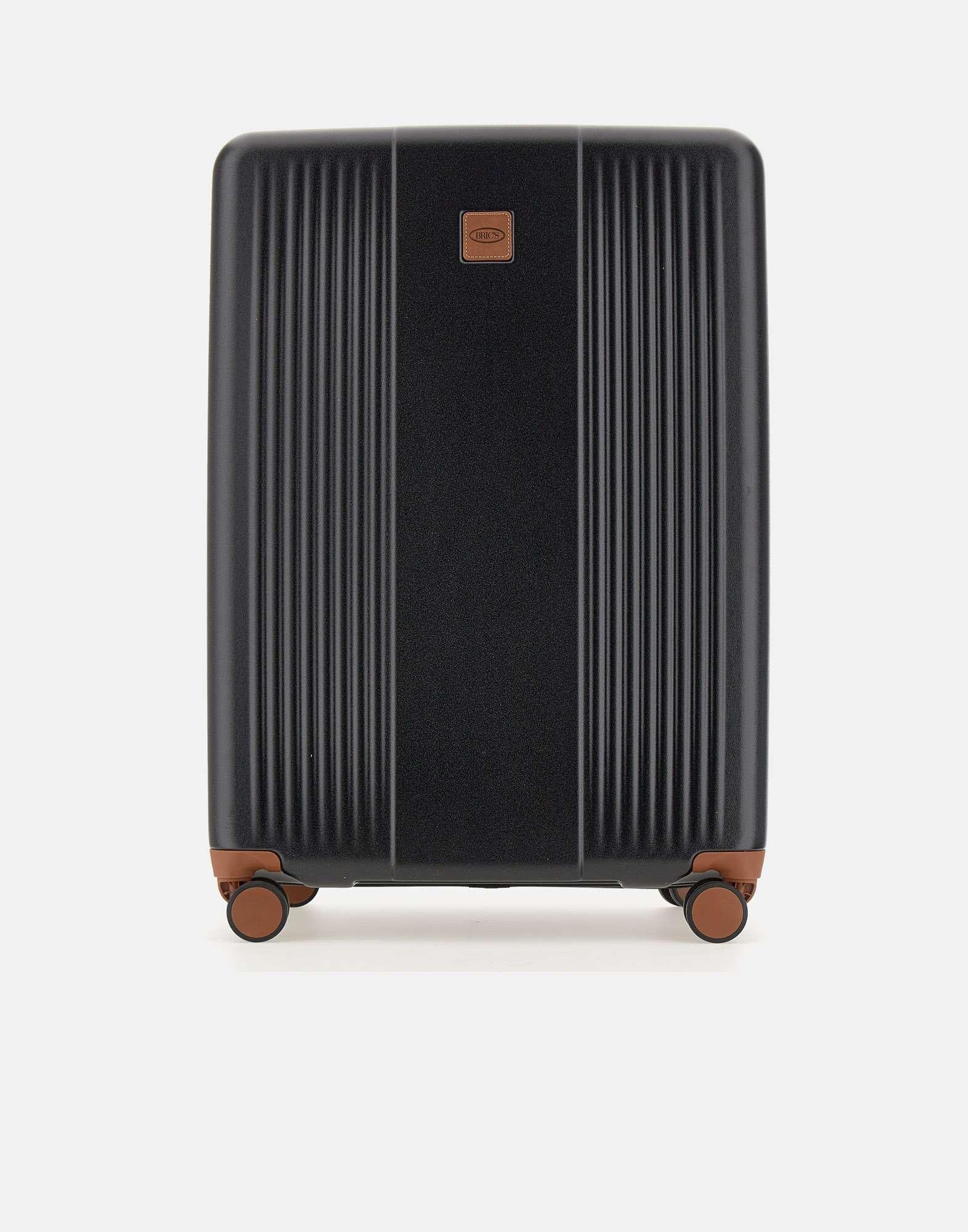 Bric's "Ferrara" cabin trolley, black, made of polycarbonate, light and resistant, opening with double slider zip, integrated TSA padlock, four swivel and recessed wheels to guarantee easy 360° movement, internal pocket with zip, separate internal compartments for help organize your objects, fabric lining, towing system made up of aluminum tubes, multistop, ergonomic handle, details with Bric's logo.