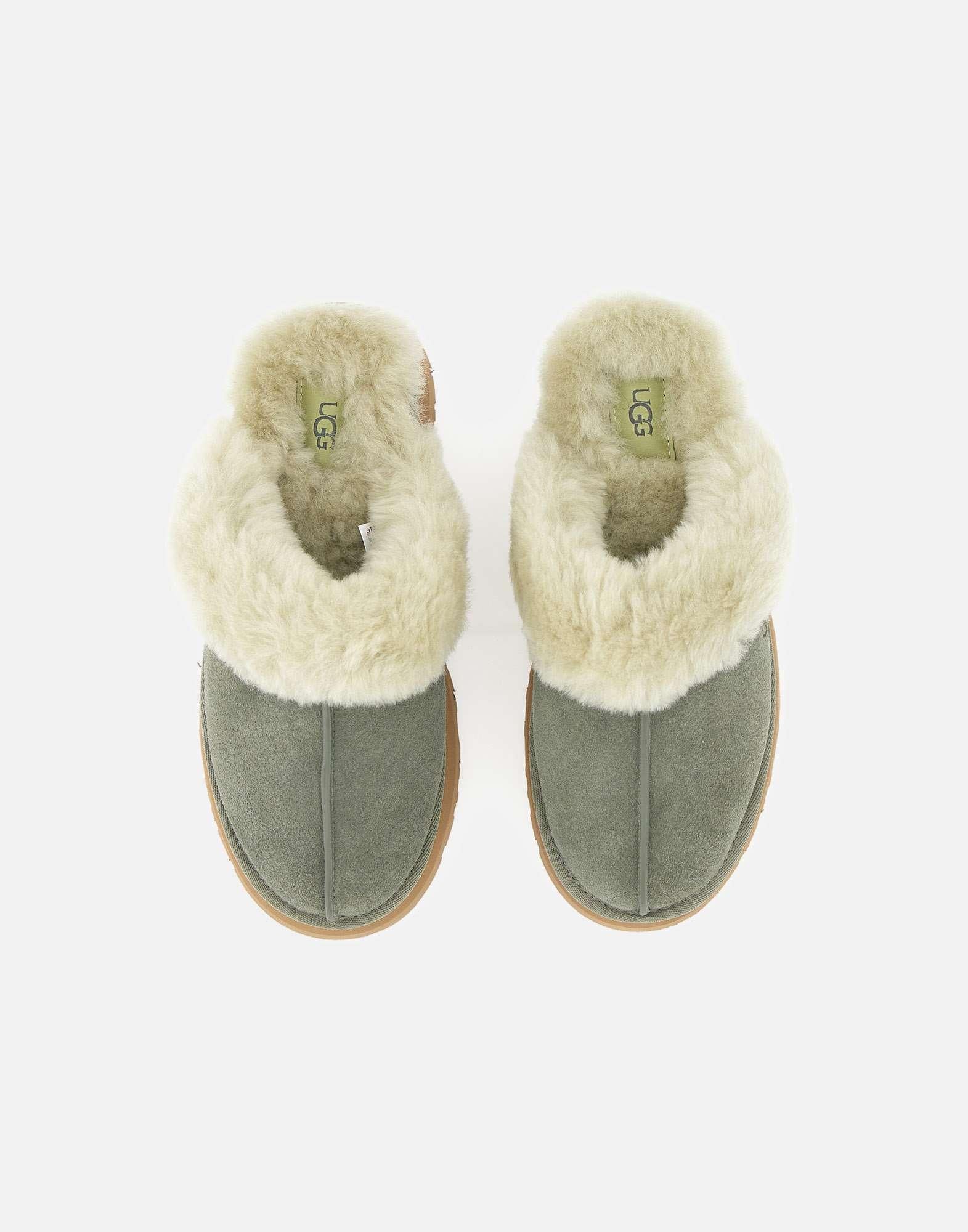 The UGG "W Disquette" mule in pastel green with a hint of green combines style of iconic Coquette and Disco models in a slip-on with retro appeal. The suede upper features a contrasting center rib, side logo, and soft sheepskin lining for snug comfort. A 3 cm rubber sole provides stability and durability. Perfect for completing casual and relaxed looks. Regular fit. Size 8 US corresponds to a EU/IT 39. Convert your size using size chart. Convert your size using the size chart. UGG WOMEN'S FOOTWEAR USA