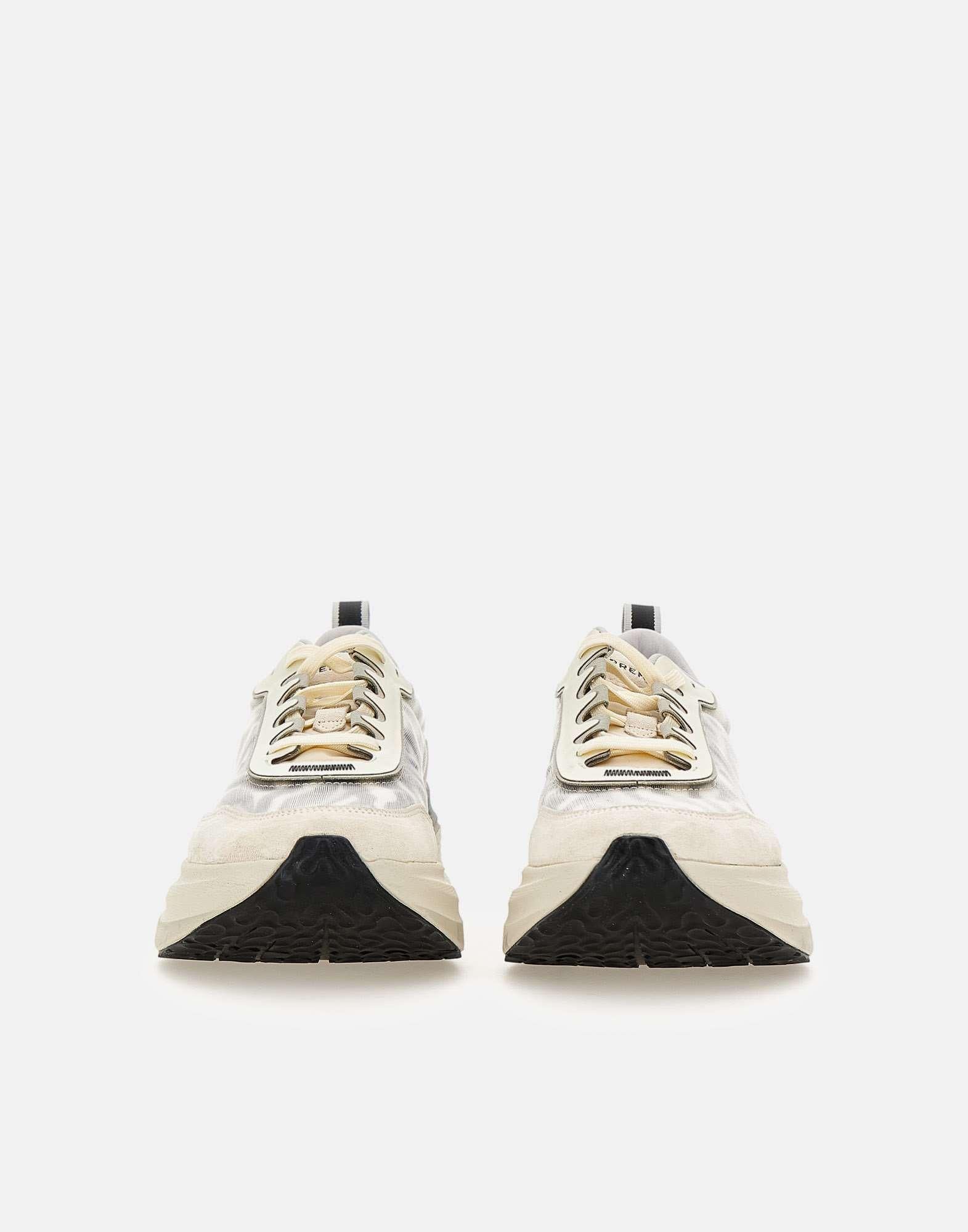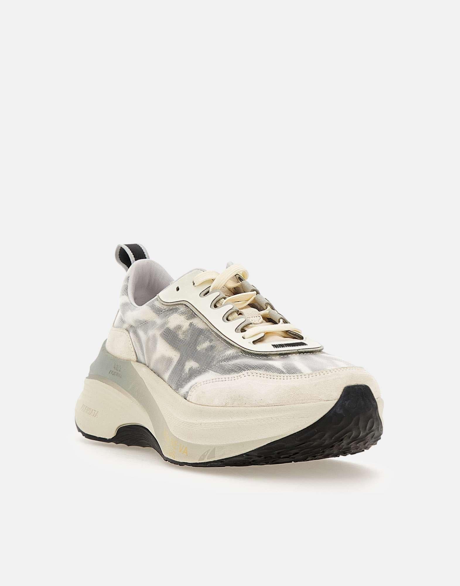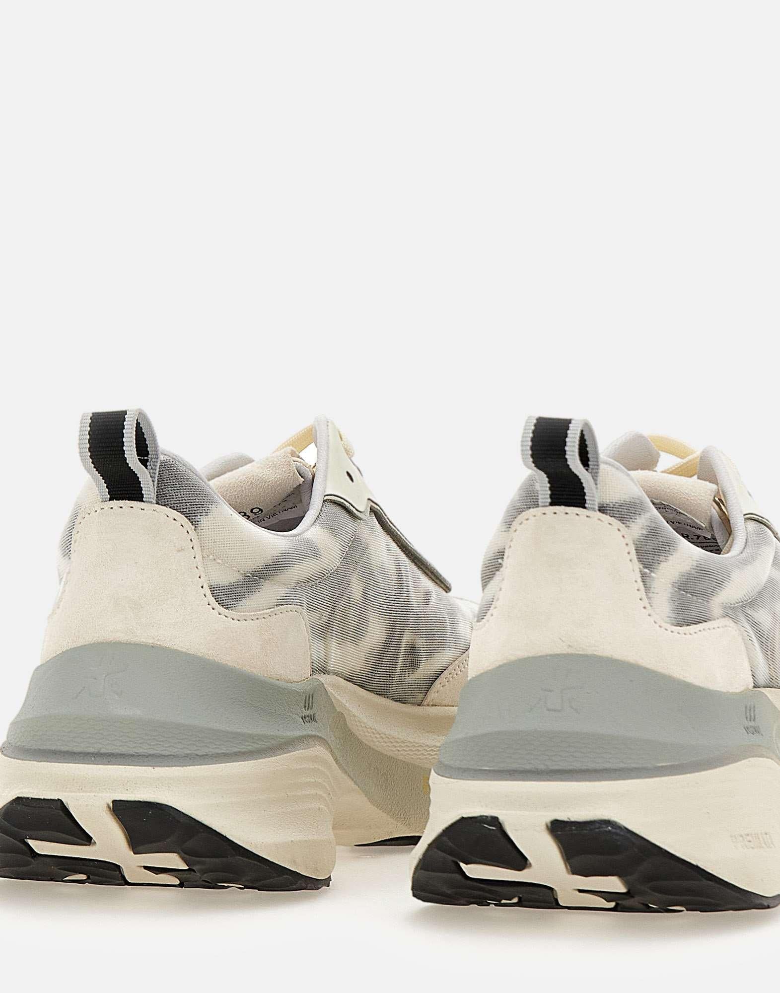 Womens Premiata "Hill7507" sneakers reinterpret brands iconic design with a refined animal-print pattern black and white tones. Crafted from nylon and suede uppers, they feature lace-up fastening, a rear pull tab, and a branded tongue. The raised sole with Premiata print ensures both comfort and signature style. Designed with a regular fit, they are ideal for adding a contemporary, distinctive touch to casual outfits.