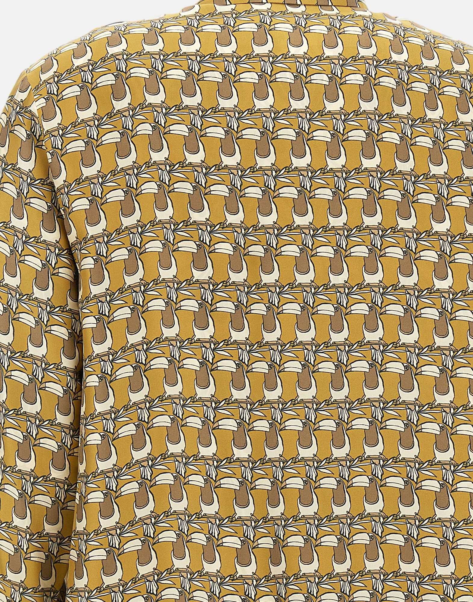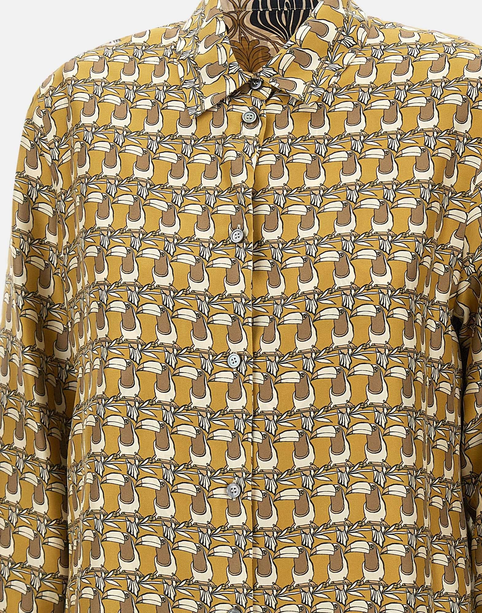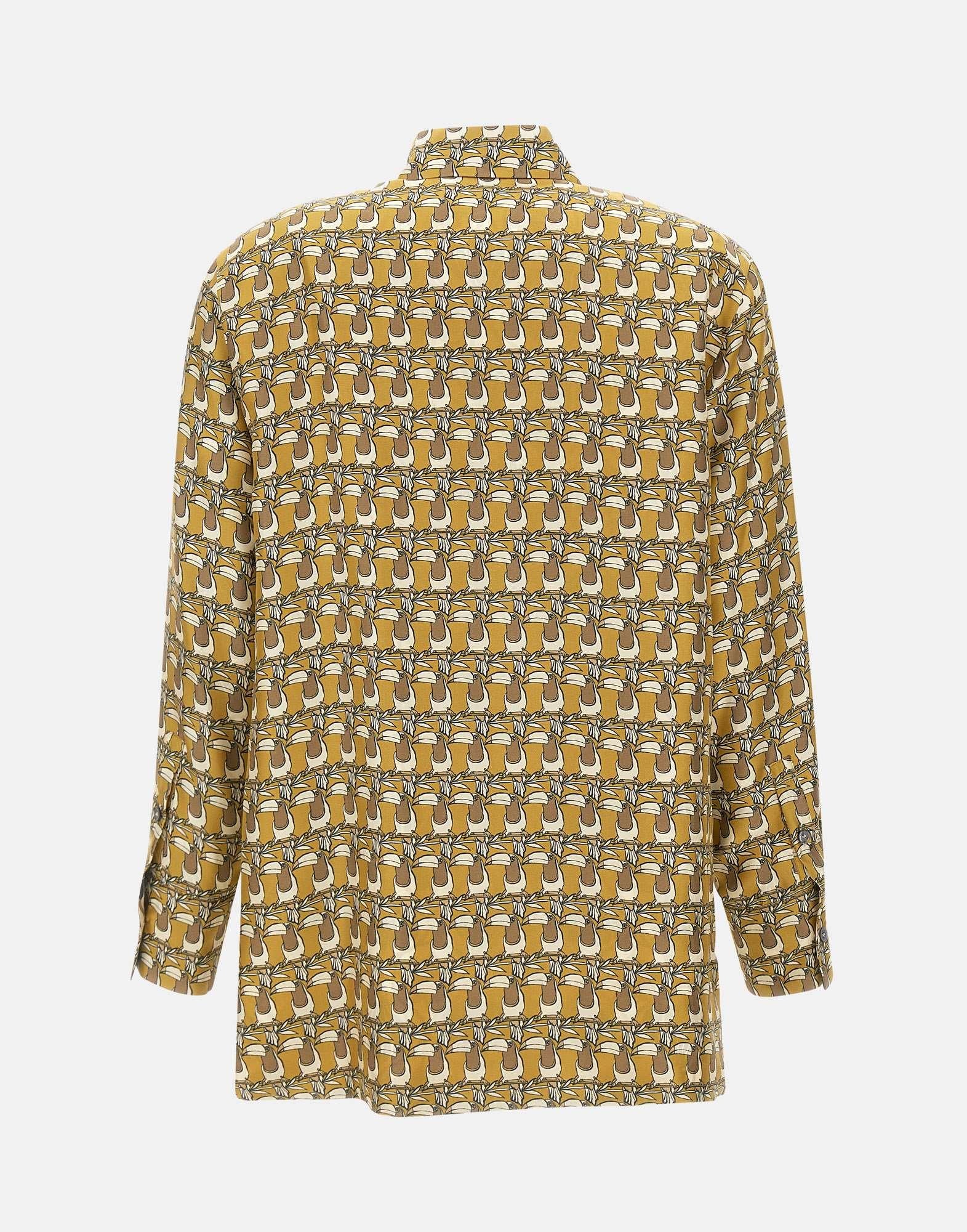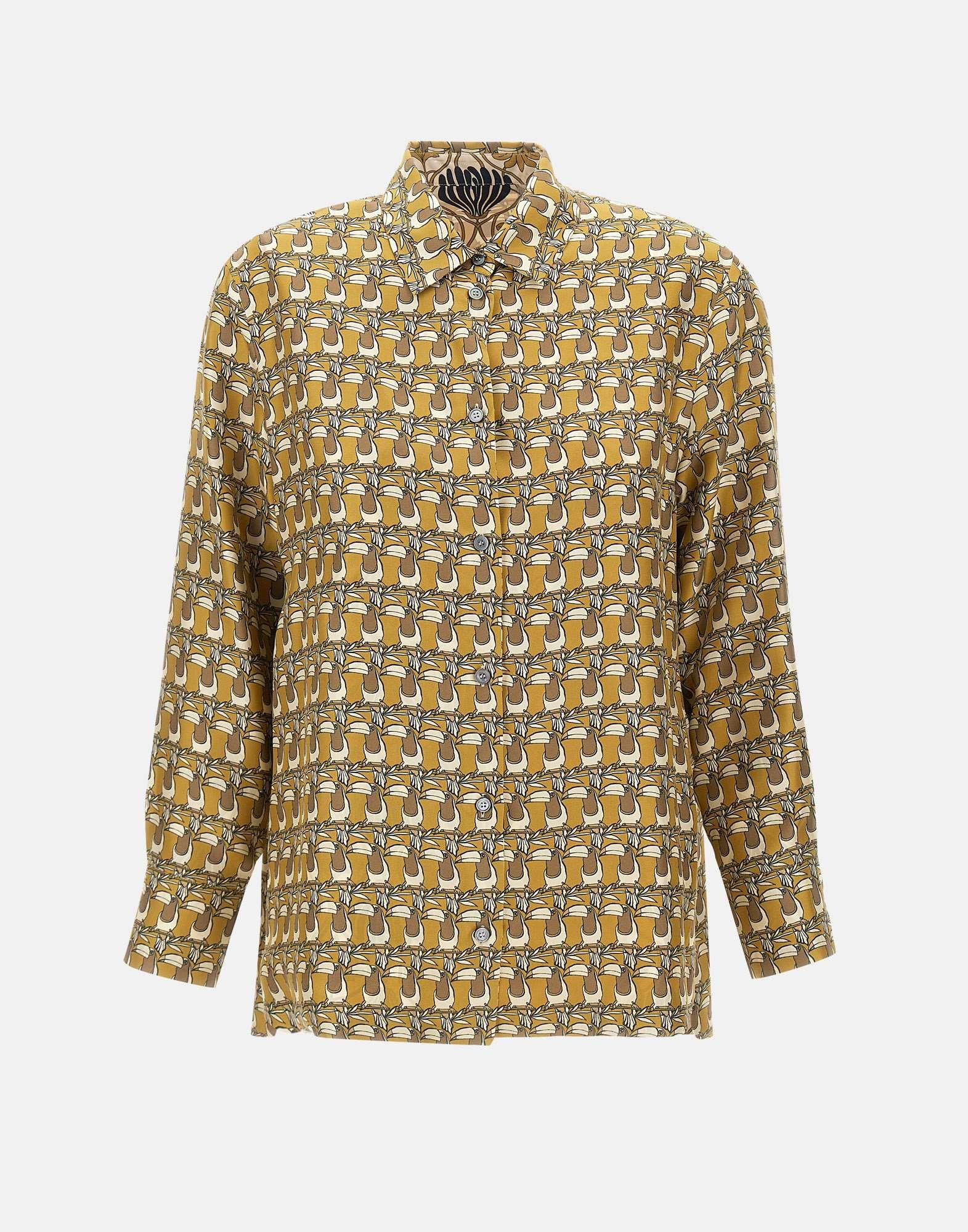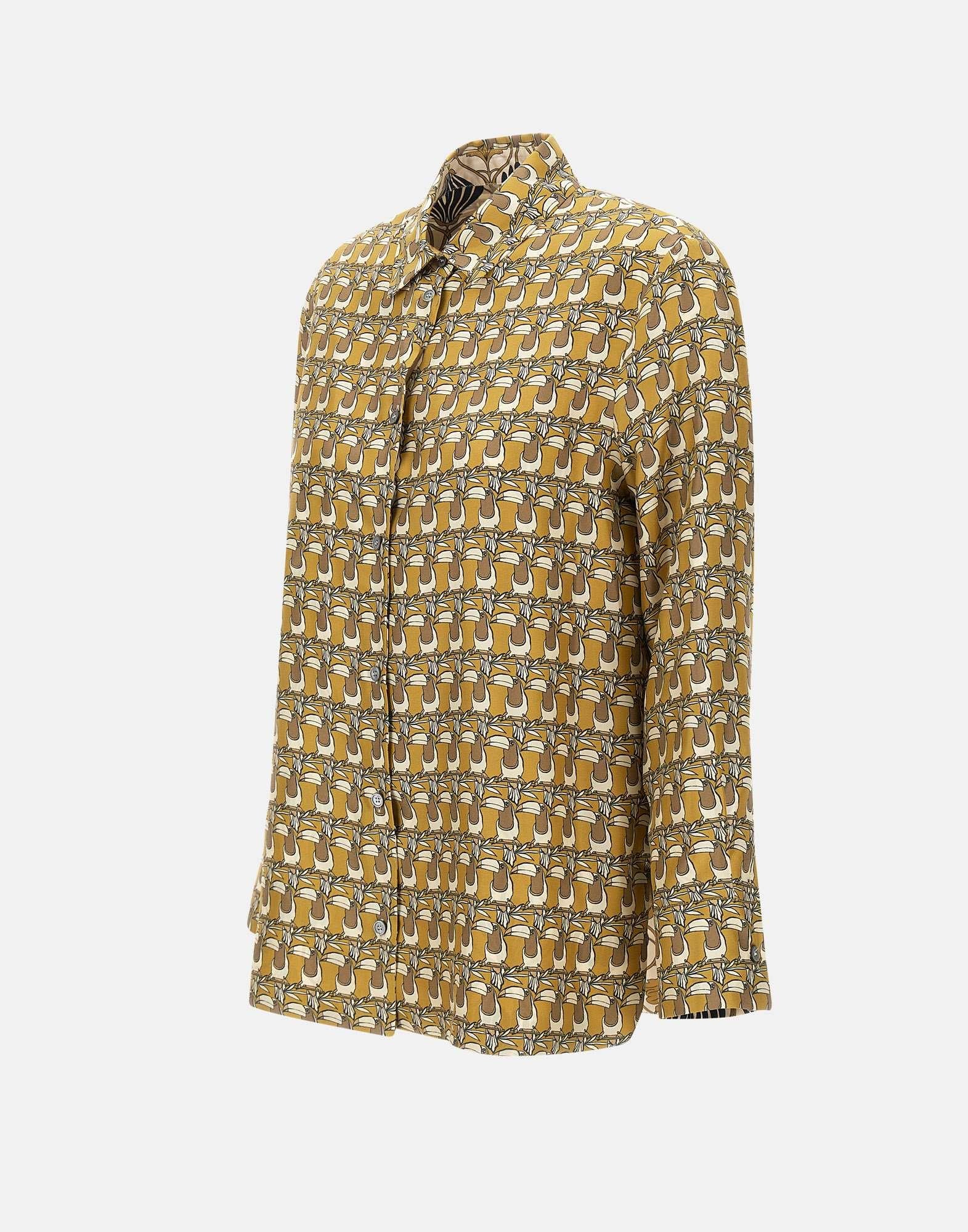 Reversible shirt "Times" 'S Max Mara Timeless, optical pattern shades of predominantly mustard yellow and ivory, printed pure silk twill, long sleeves, classic collar, mother-of-pearl button fastening, buttoned cuffs, flared, rounded side slits, asymmetrical hem slightly longer at back, regular fit
