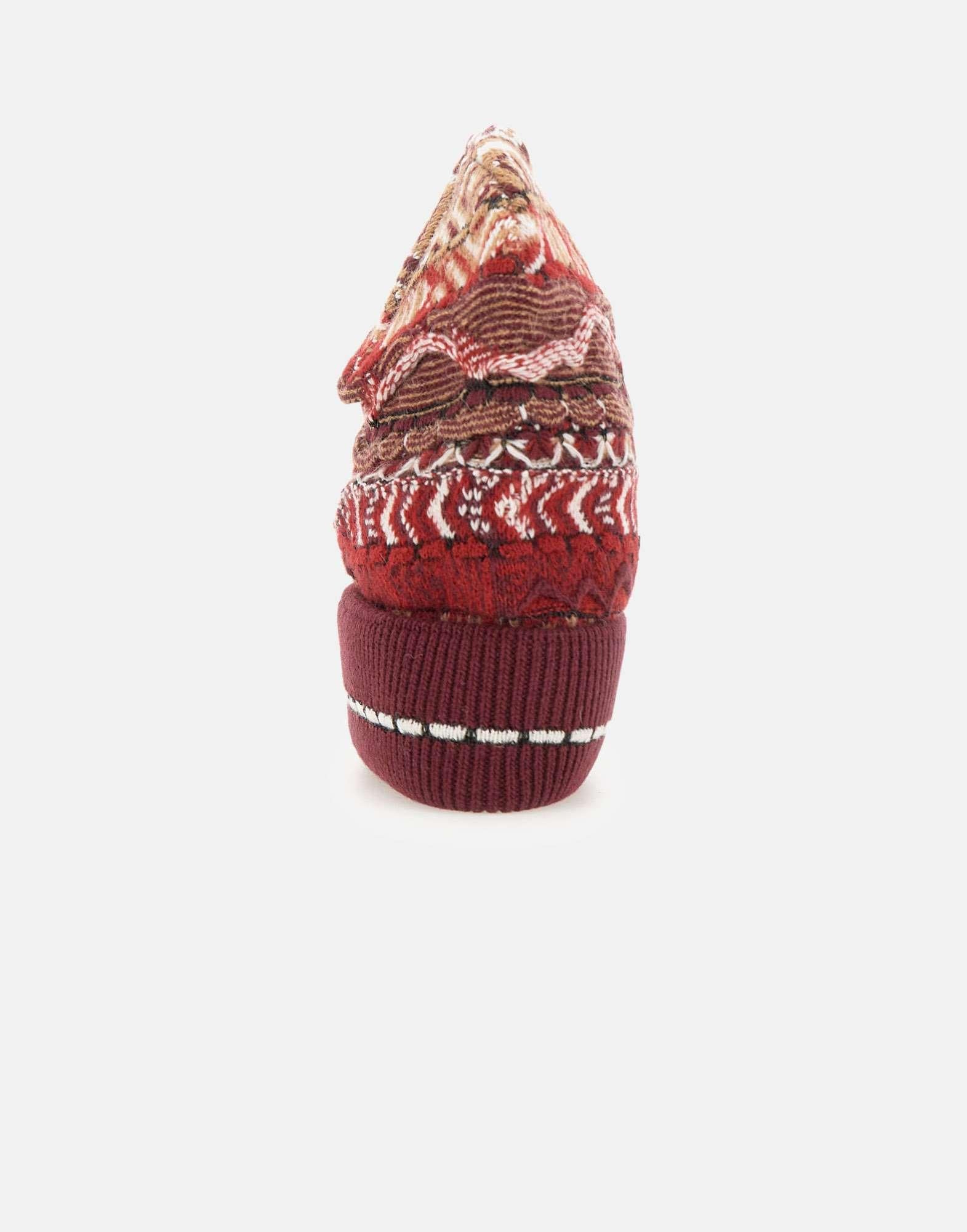 Jacquard beanie by Laneus, crafted from a soft, warm blend of alpaca and wool. Featuring seasonal shades of red and burgundy, it showcases a bold new jacquard design with the Laneus logo subtly woven into the pattern. With its graphic edge and distinctive character, this beanie is the perfect accessory to elevate your winter wardrobe. Made in Italy.