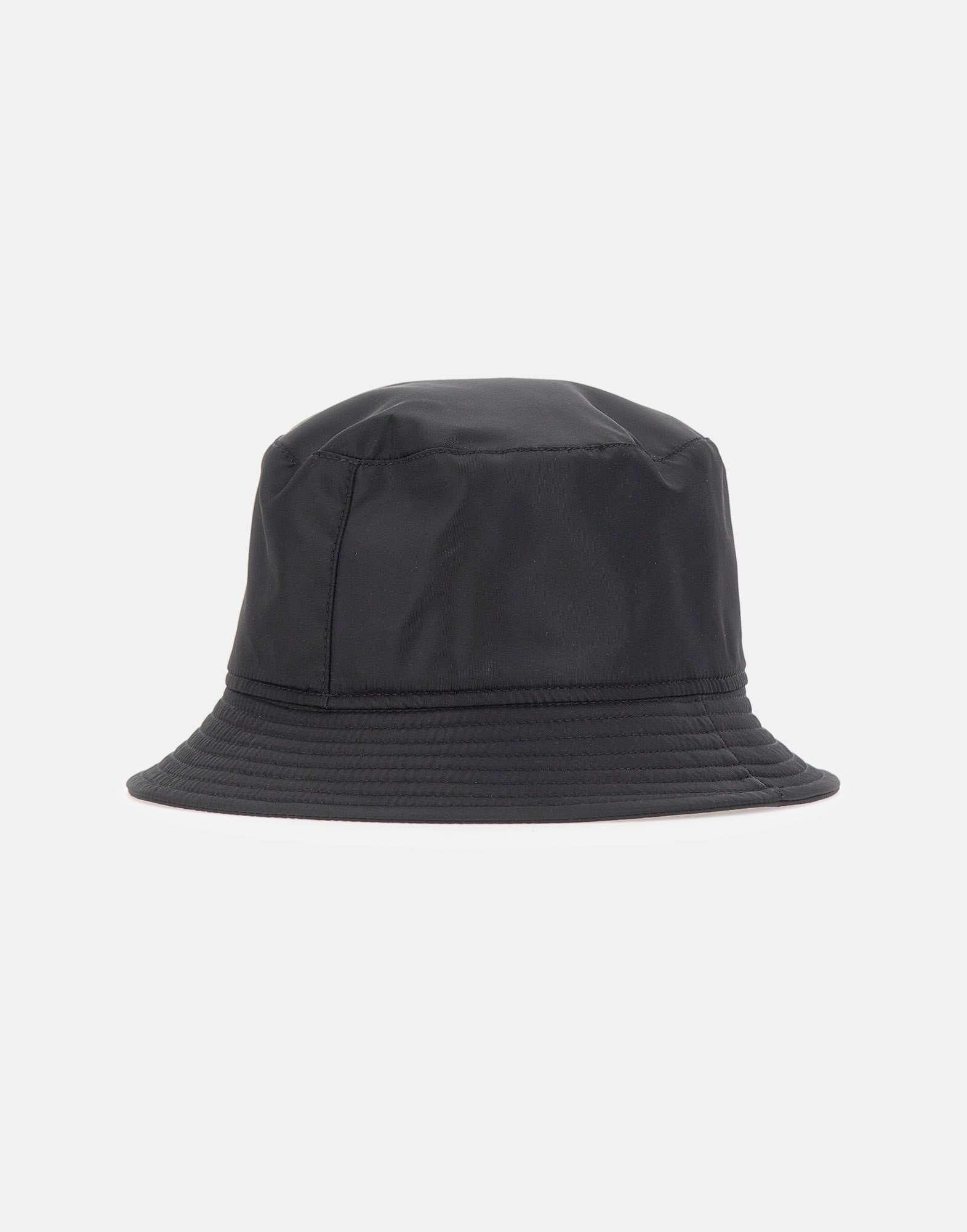Borsalino "Morgan Rain" hat in black, bucket style with a soft crown and downward-sloping brim (approx. 5 cm). Crafted from water-repellent technical fabric, it features a lined Oxford interior for added comfort. A galvanized metal logo plaque completes this refined design, blending functionality with timeless Italian elegance. Made in Italy. Regular size.