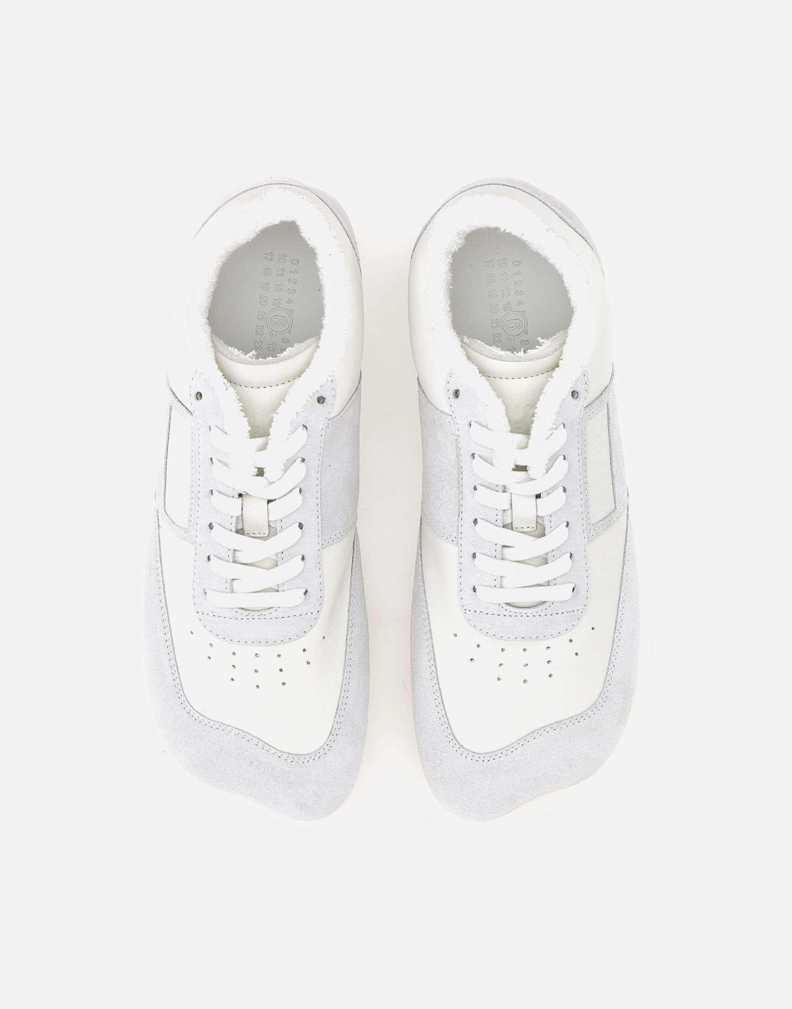 "Anatomic sneakers" MM6 Maison Margiela, white and light grey, in suede, cotton blend lining, low silhouette, matching lace-up fastening, ventilation holes, padded collar and tongue with shearling trim, brand's Numeric Signature on the tongue, small stitching on the heel counter, anatomical MM6 last, regular fit, Made in Italy.