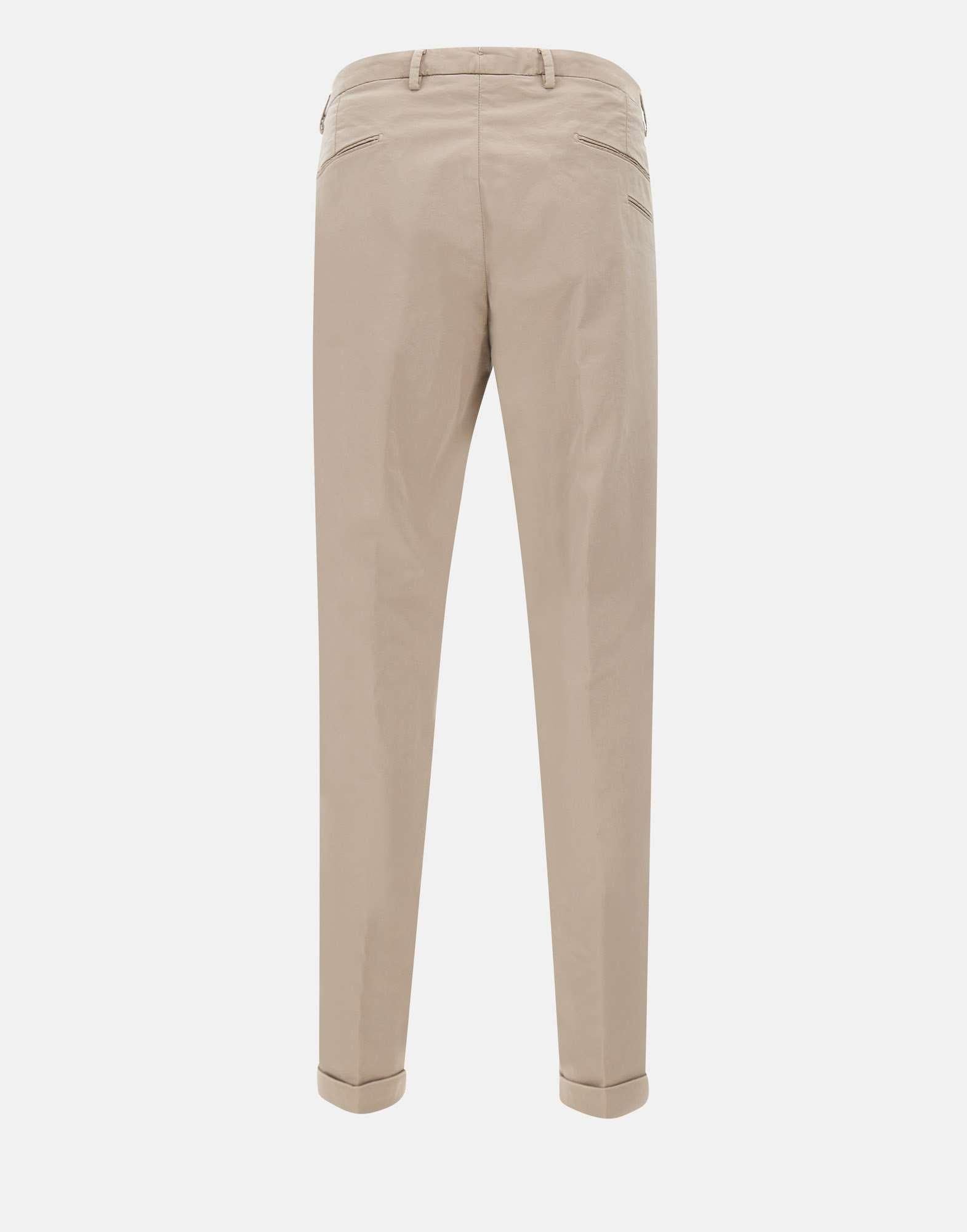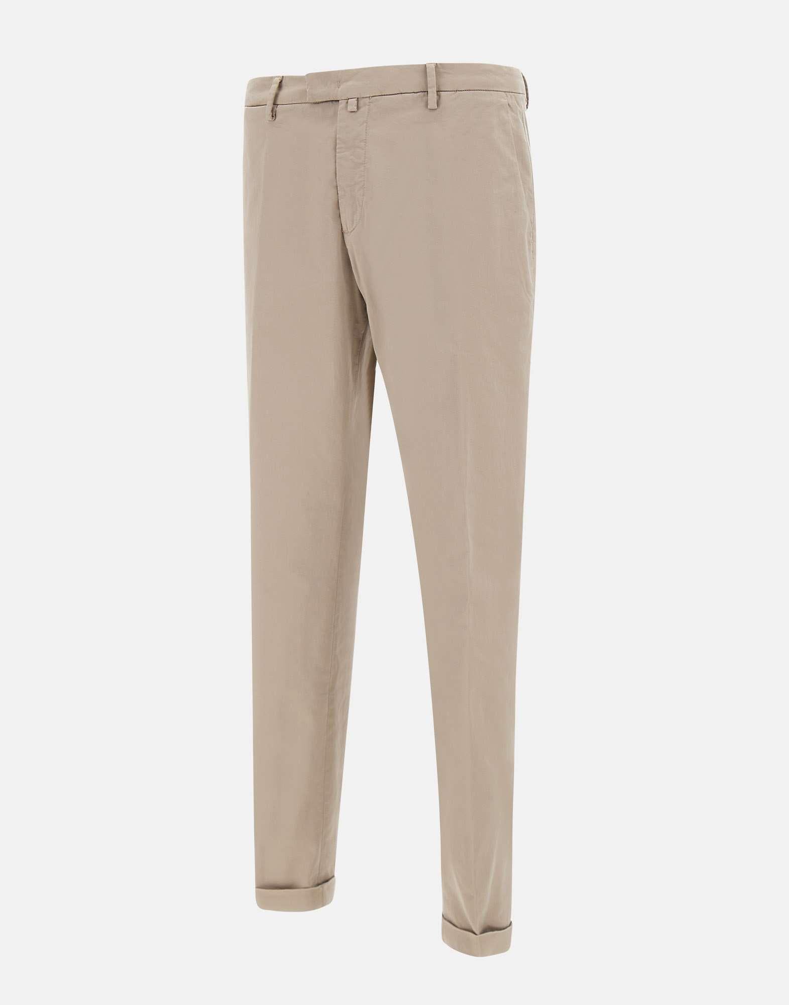 Briglia 1949 men's "BG03" stretch cotton trousers, sand, extra comfortable fabric to touch and to wear, button and zip closure, waist with belt loops, side welt pockets, single welt pockets on back and mini pocket, turn-up at the 3cm bottom, slim fit, made in Italy. Wash carefully and avoid prolonged exposure to sun.