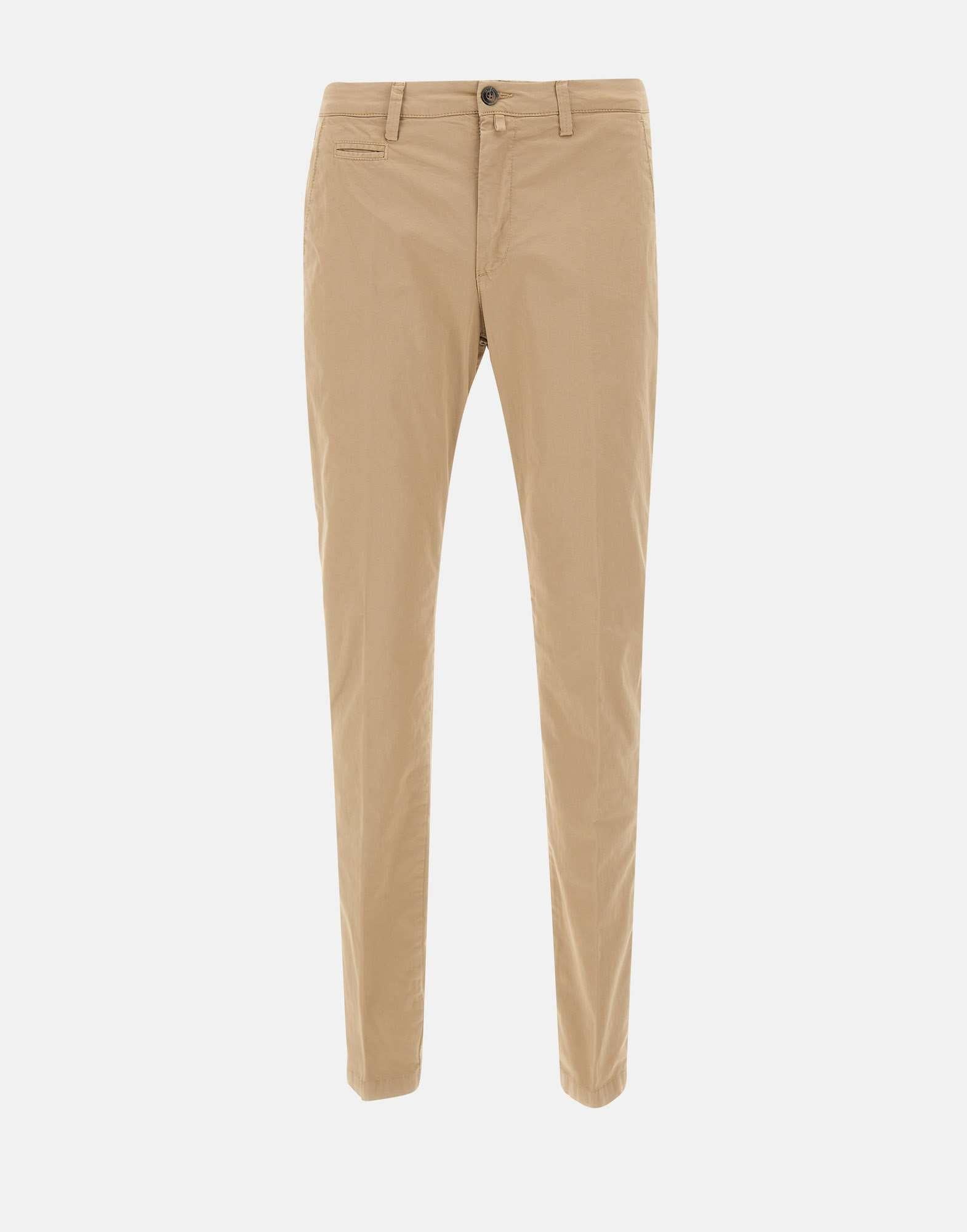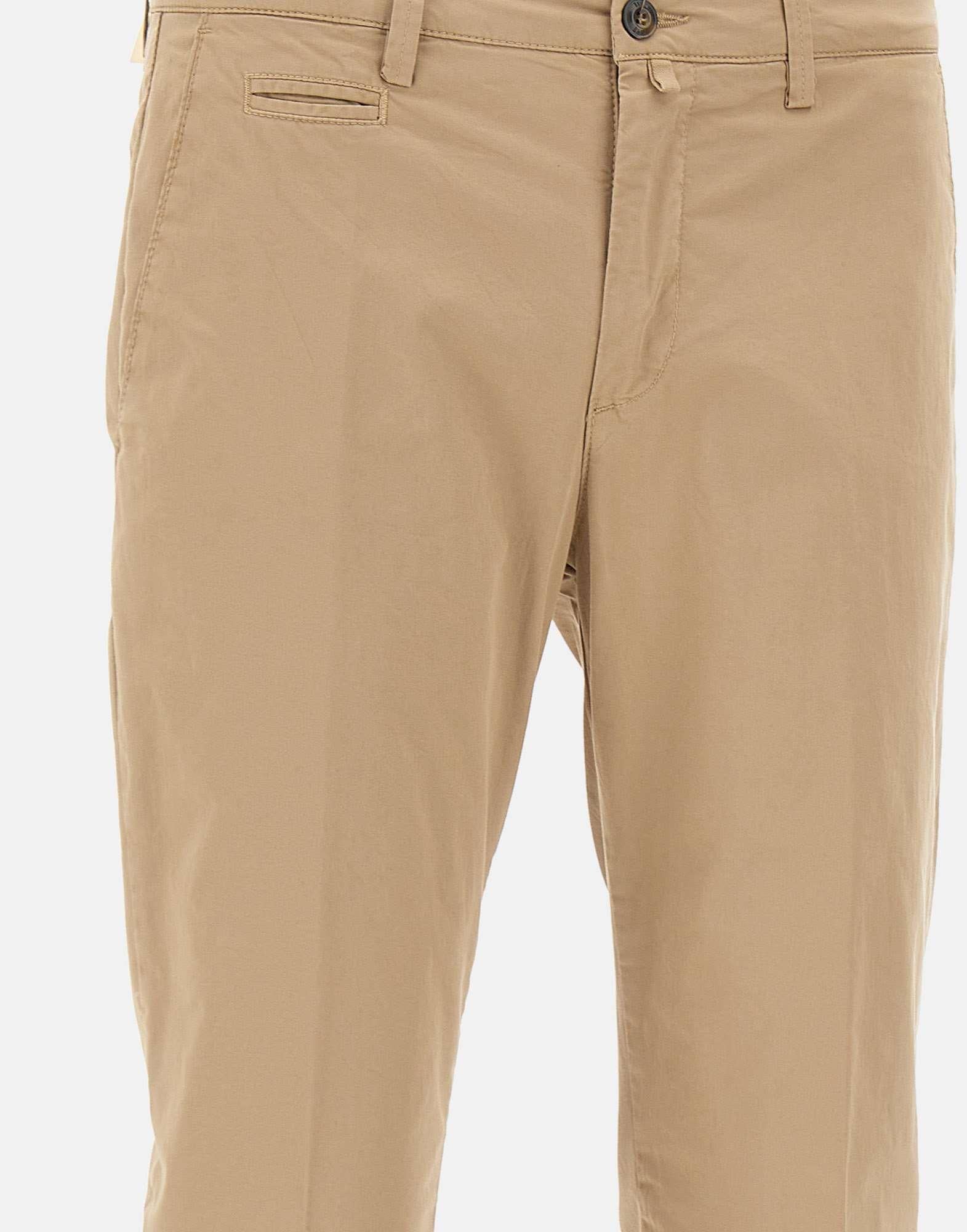 Briglia1949 "BG05" men's stretch cotton trousers, sand beige, zip and button closure, side welt pockets, single welt rear pockets with buttons, watch pocket, regular waist with belt loops, slim fit. Made in Italy.