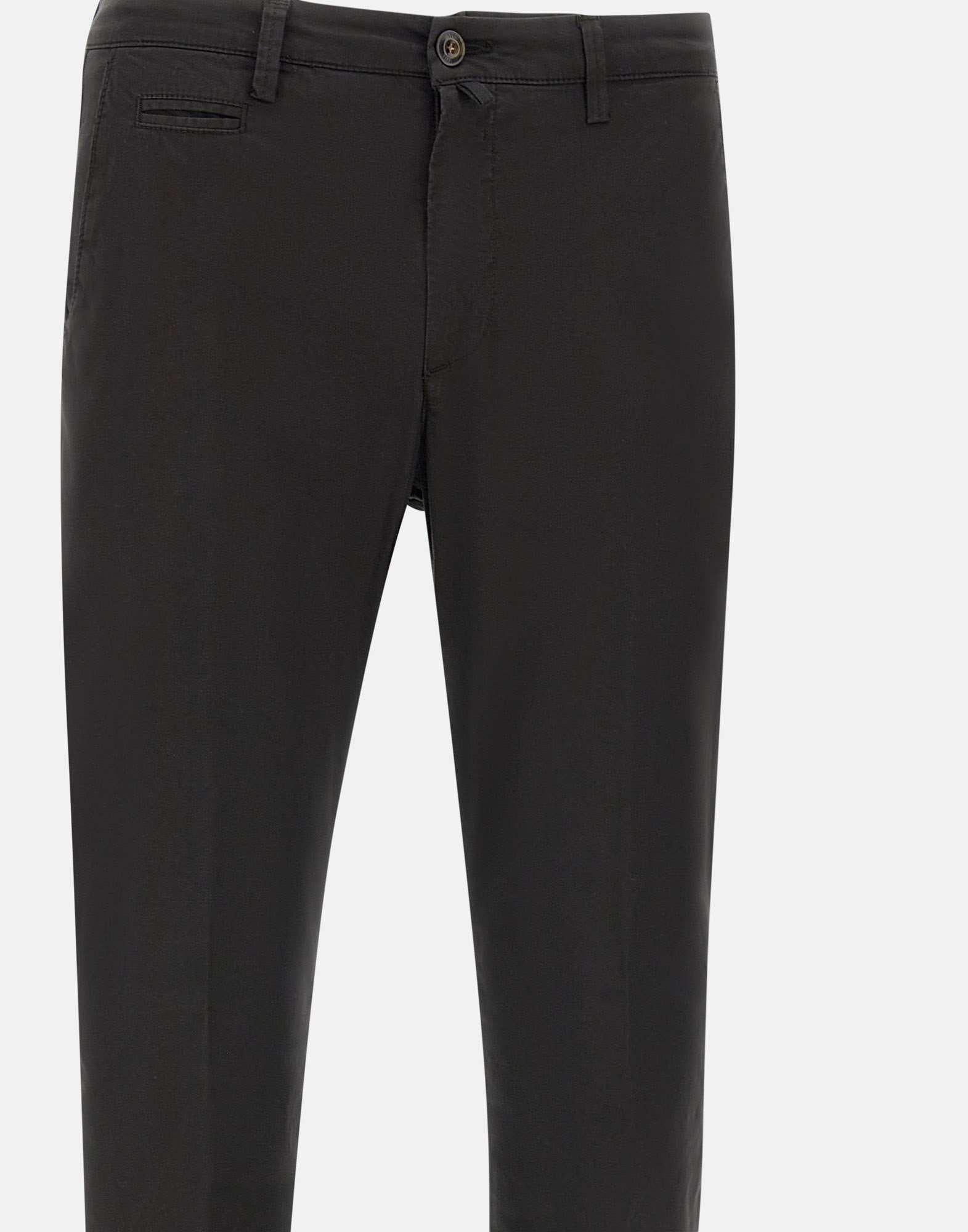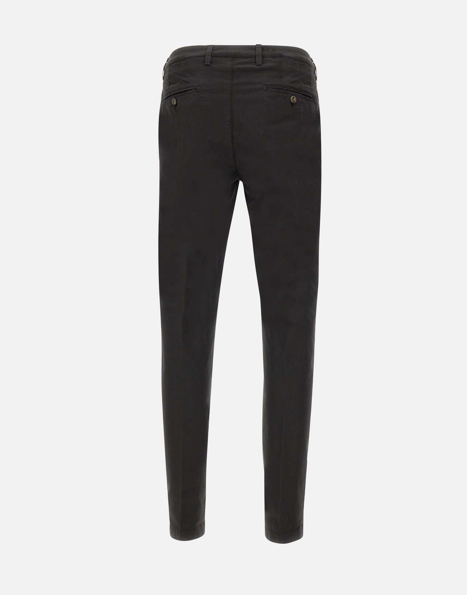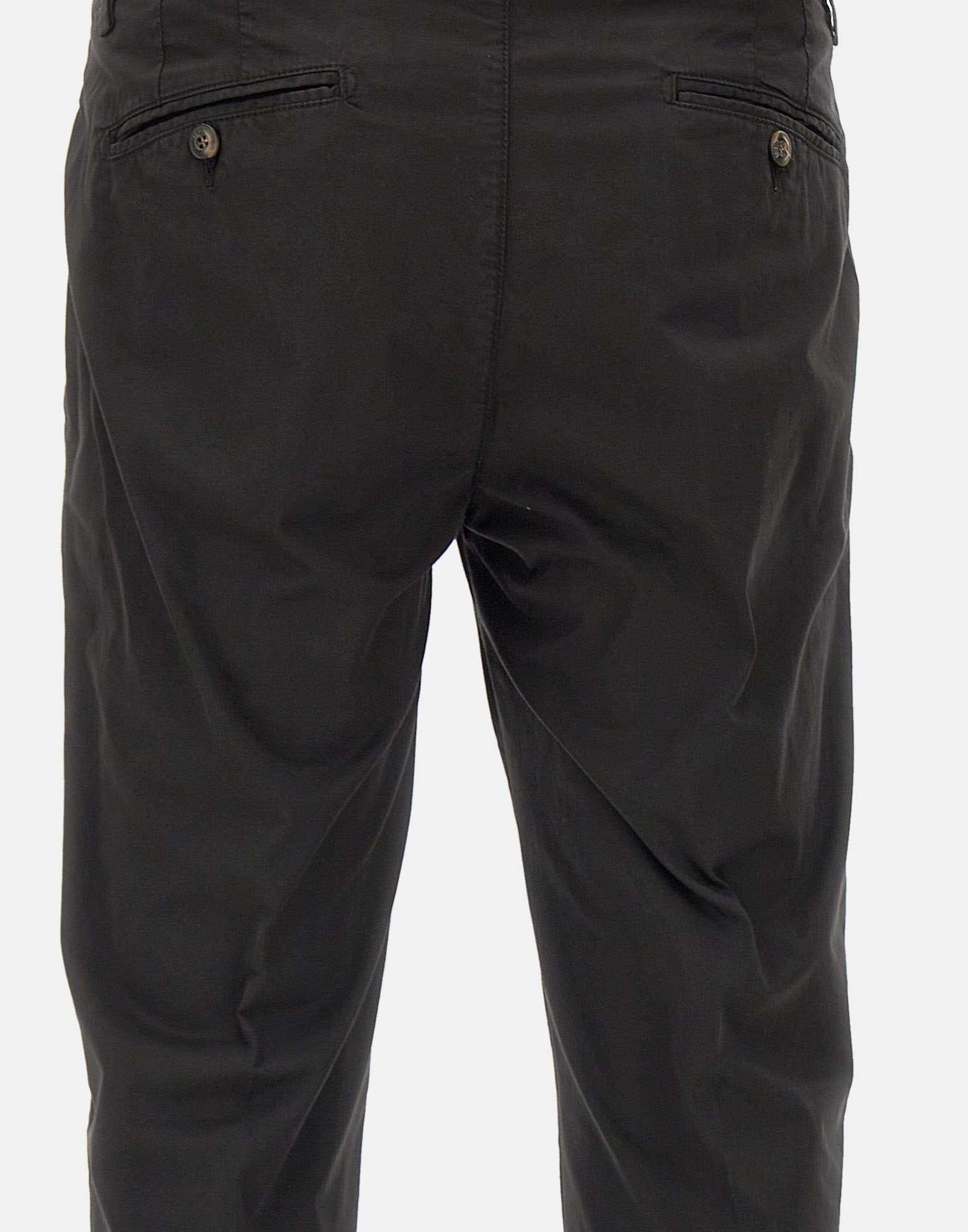 Briglia1949 "BG05" men's stretch cotton trousers, black colour, zip and button closure, side welt pockets, single welt rear pockets with buttons, watch pocket, regular waist with belt loops, slim fit. Made in Italy.