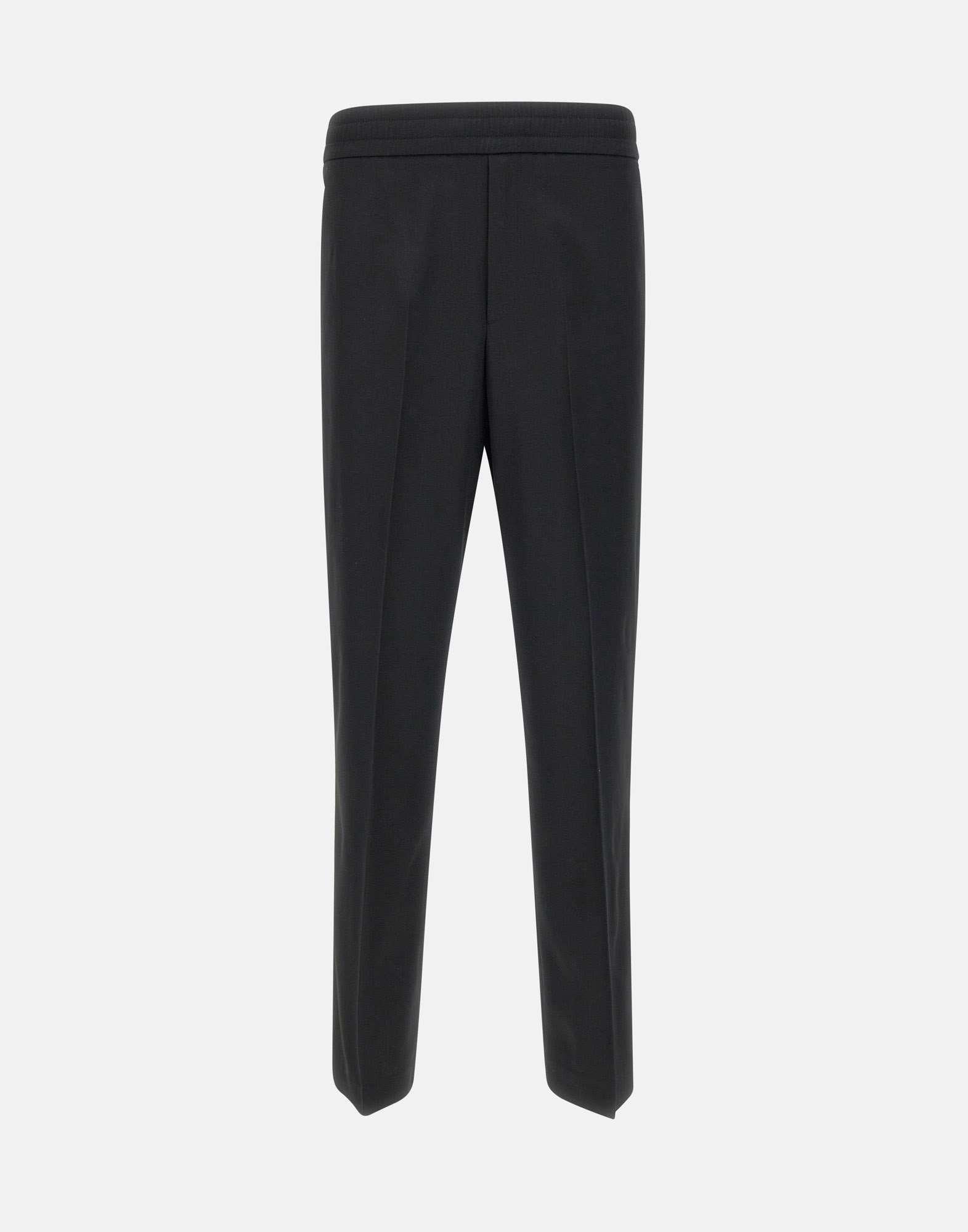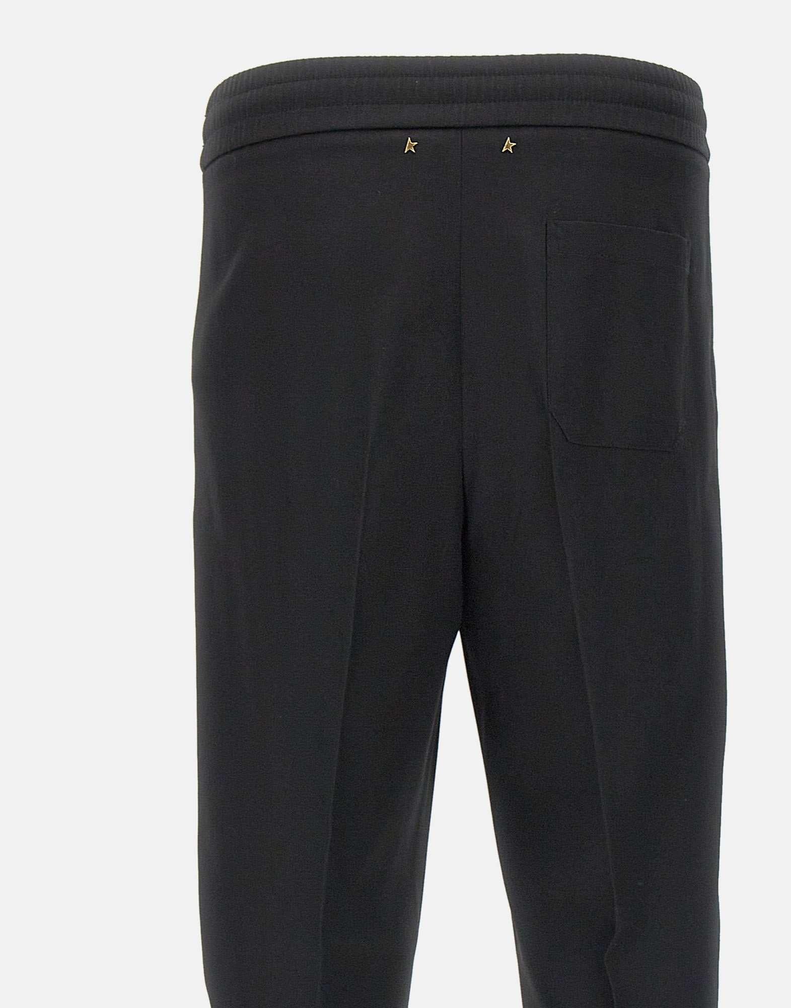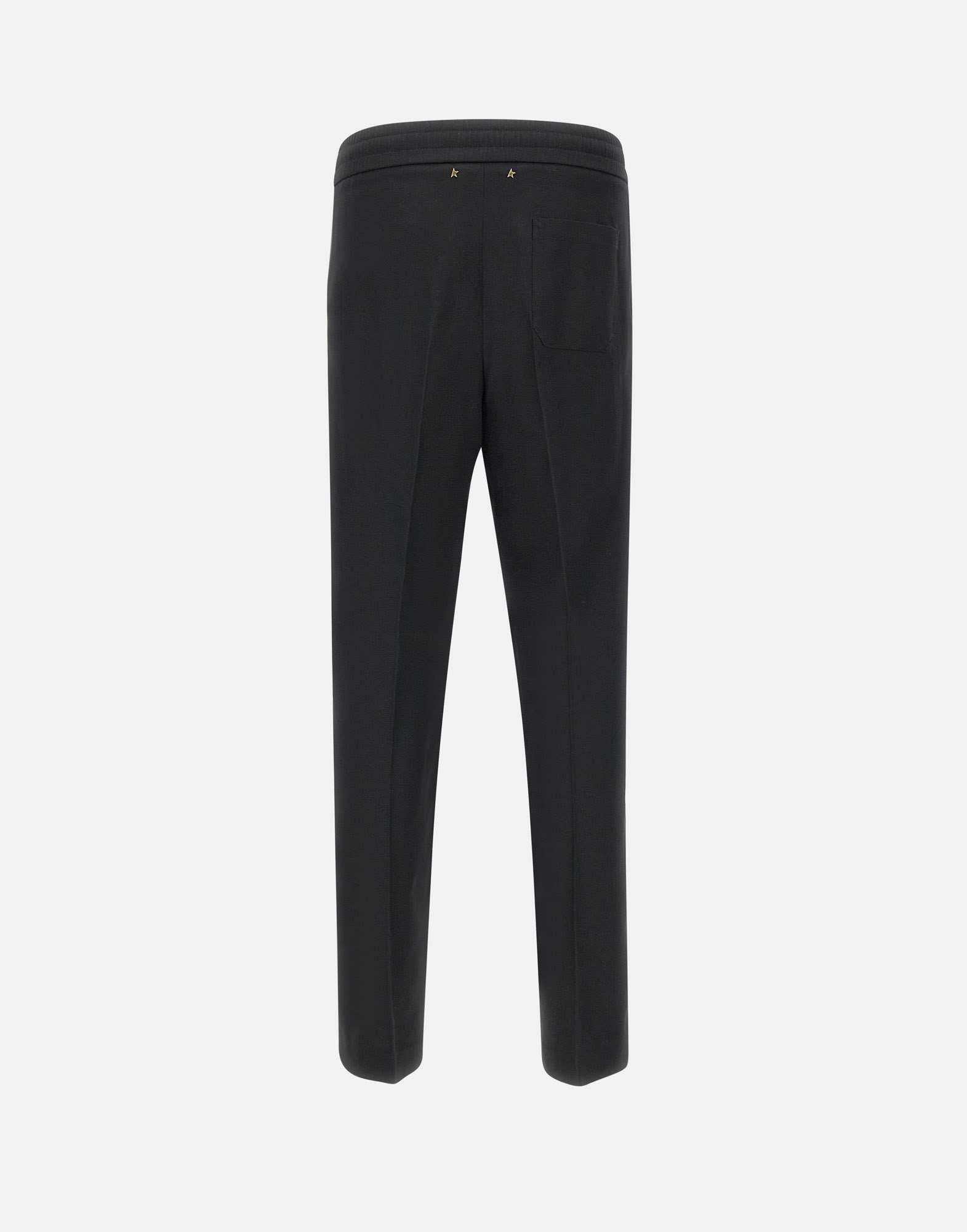 Golden Goose "Lennon" men's trousers, black, made of wool, elasticated waistband with matching drawstring and metal finials, flush side pockets, back pocket, straight leg with 24cm hem, iconic logo stars on the back, regular fit. Made in Italy