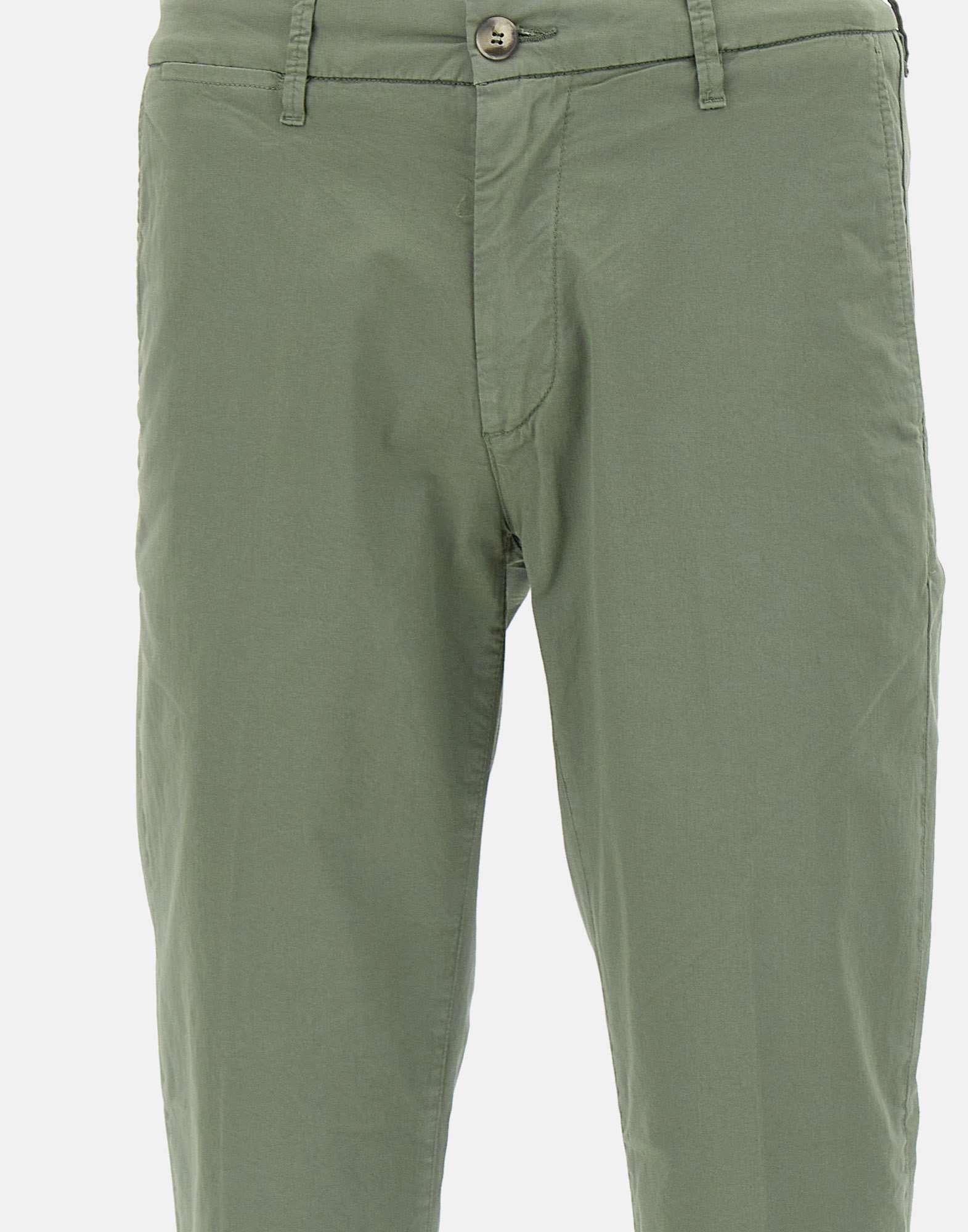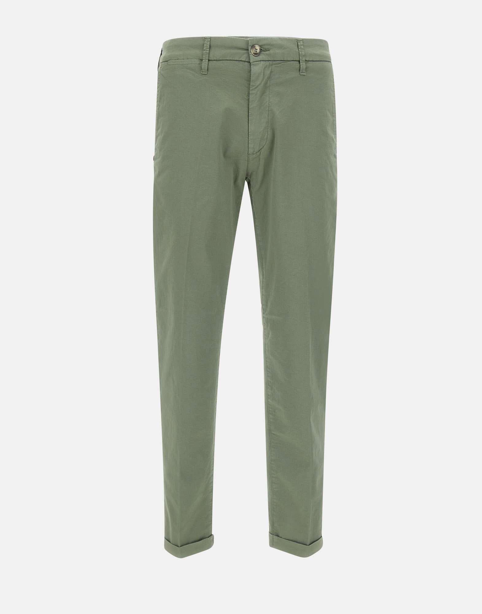 Re-Hash "Mucha chinos" stretch cotton trousers, military green, comfortable fabric to the touch and to wear, zip and button fastening, side welt pockets, regular waist with belt loops, front watch pocket, back pockets with button, logo patch on the back in suede, 17cm leg bottom and 2.5cm turn-up, slim fit, made in Italy.