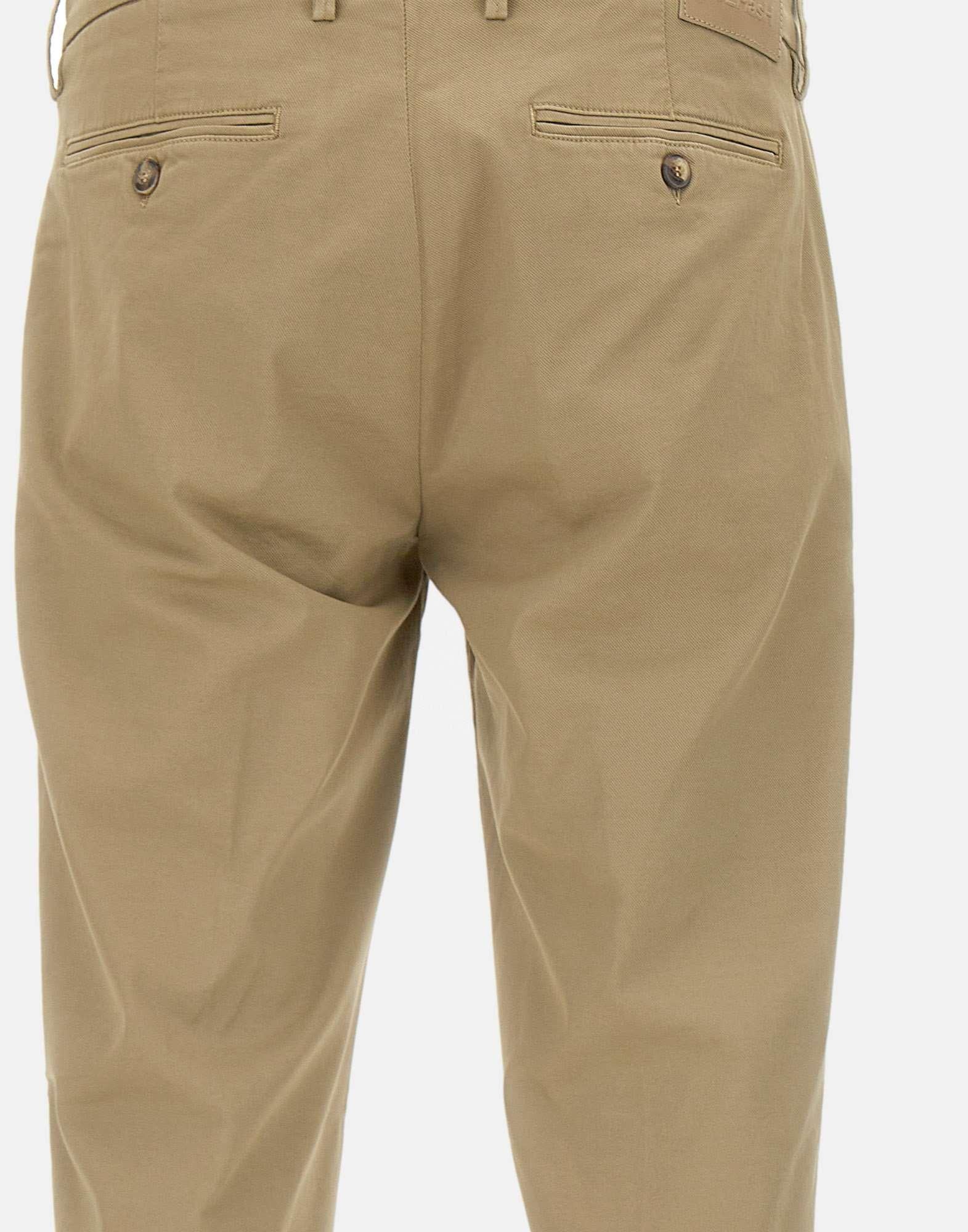 Re-Hash "Mucha Chinos" men's cotton and lyocell blend trousers, coffemilk, extracomfortable Tencel fabric, zip and button closure with silver logo, side welt pockets, single welt pockets on back with button, 17cm hem with 3cm turn-up, slim fit. Made in Italy