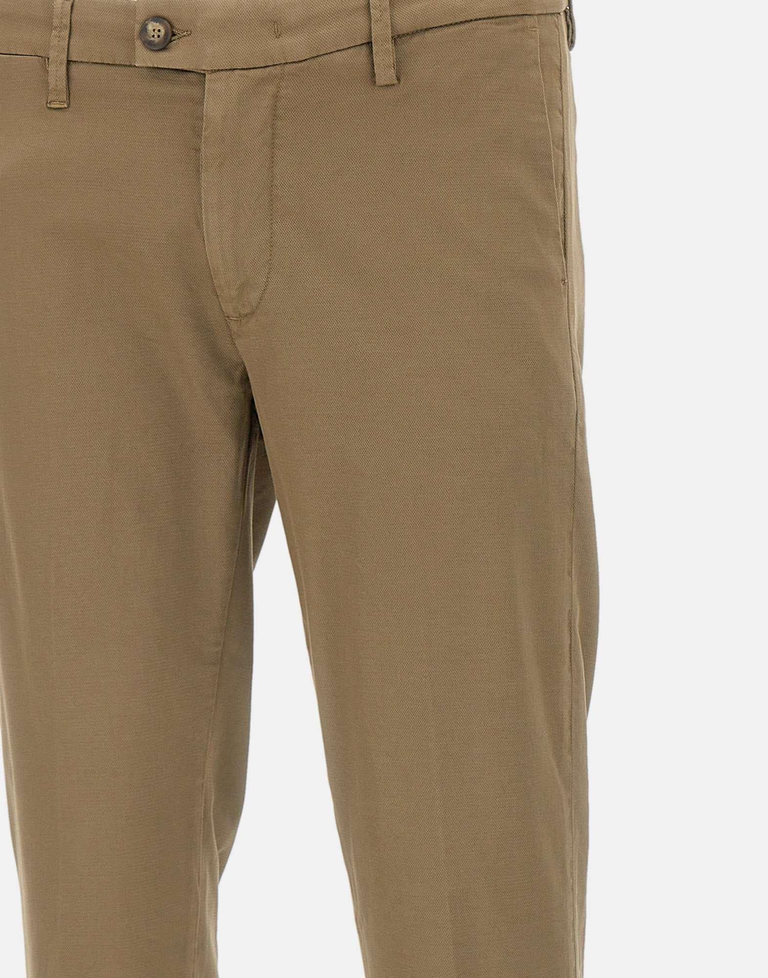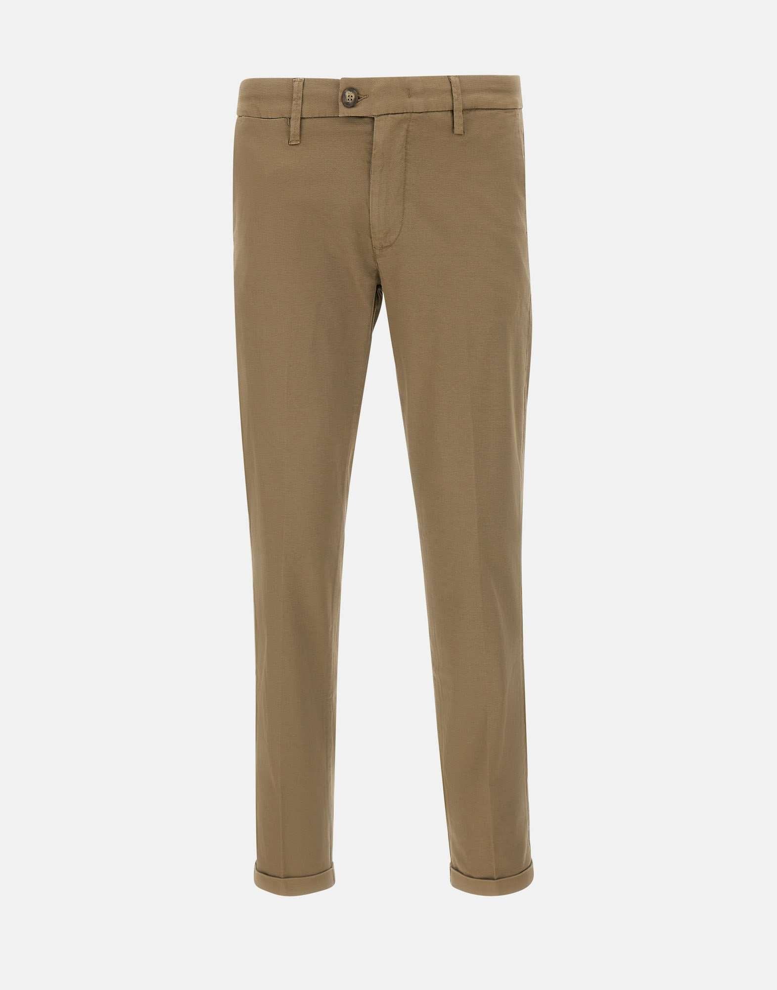 Pantaloni uomo Re-Hash "Mucha10" in misto cotone e lyocell stretch, color caffè, tessuto super confortevole al tatto e all'indosso, passanti per cintura, chiusura con bottone, gancetto e zip, mini taschino sul davanti, tasche laterali a filo, tasche posteriori con bottone, fondo 17cm e risvolto 2,5cm, slim fit. Made in Italy