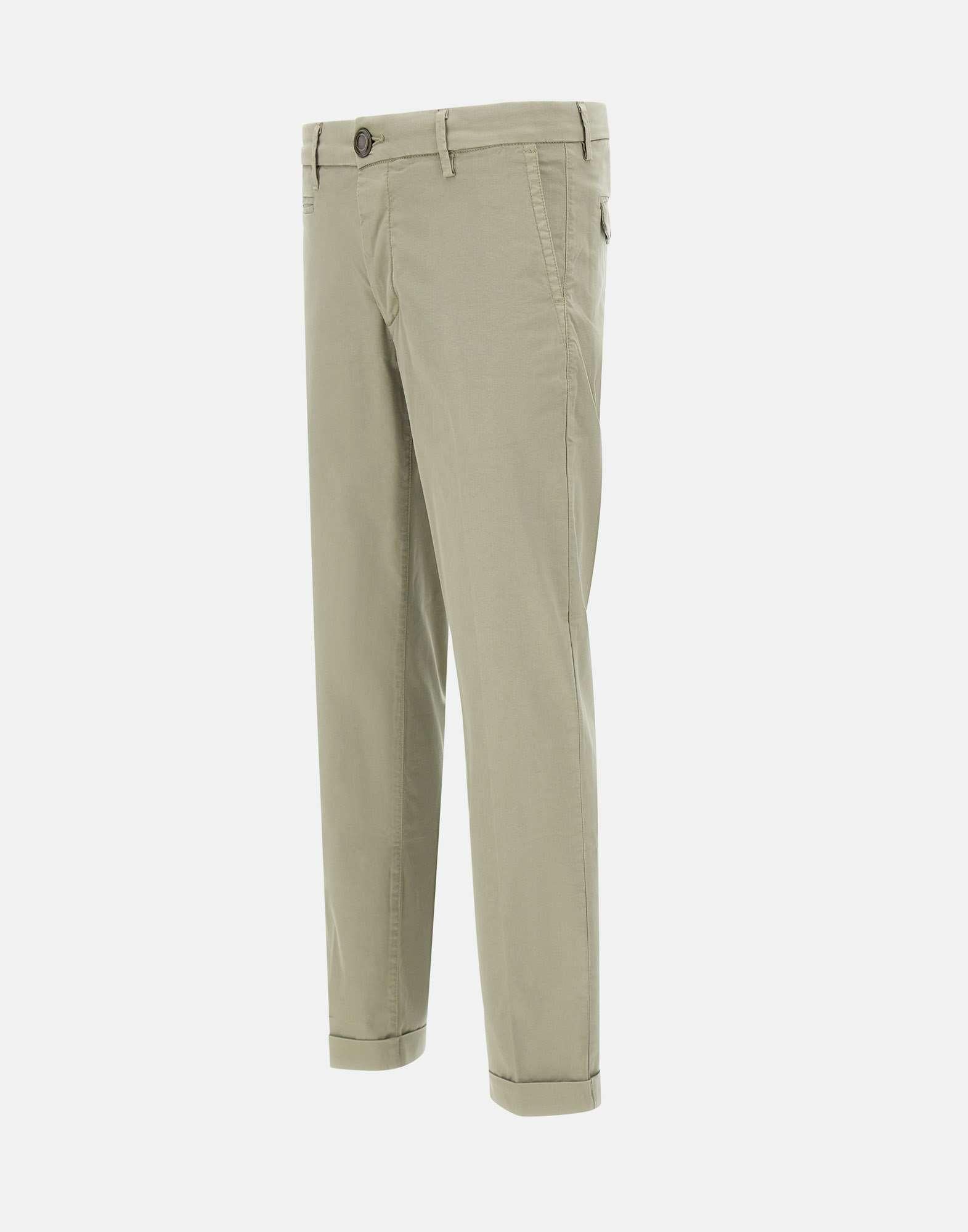 Re-Hash "MuchaB" men's stretch cotton and lyocell blend trousers, sand color, belt loops, hidden button fastening and first logo button, mini pocket on front, side welt pockets, back pockets with flap and button, 17cm hem and 3.5cm turn-up, slim fit. Made in Italy