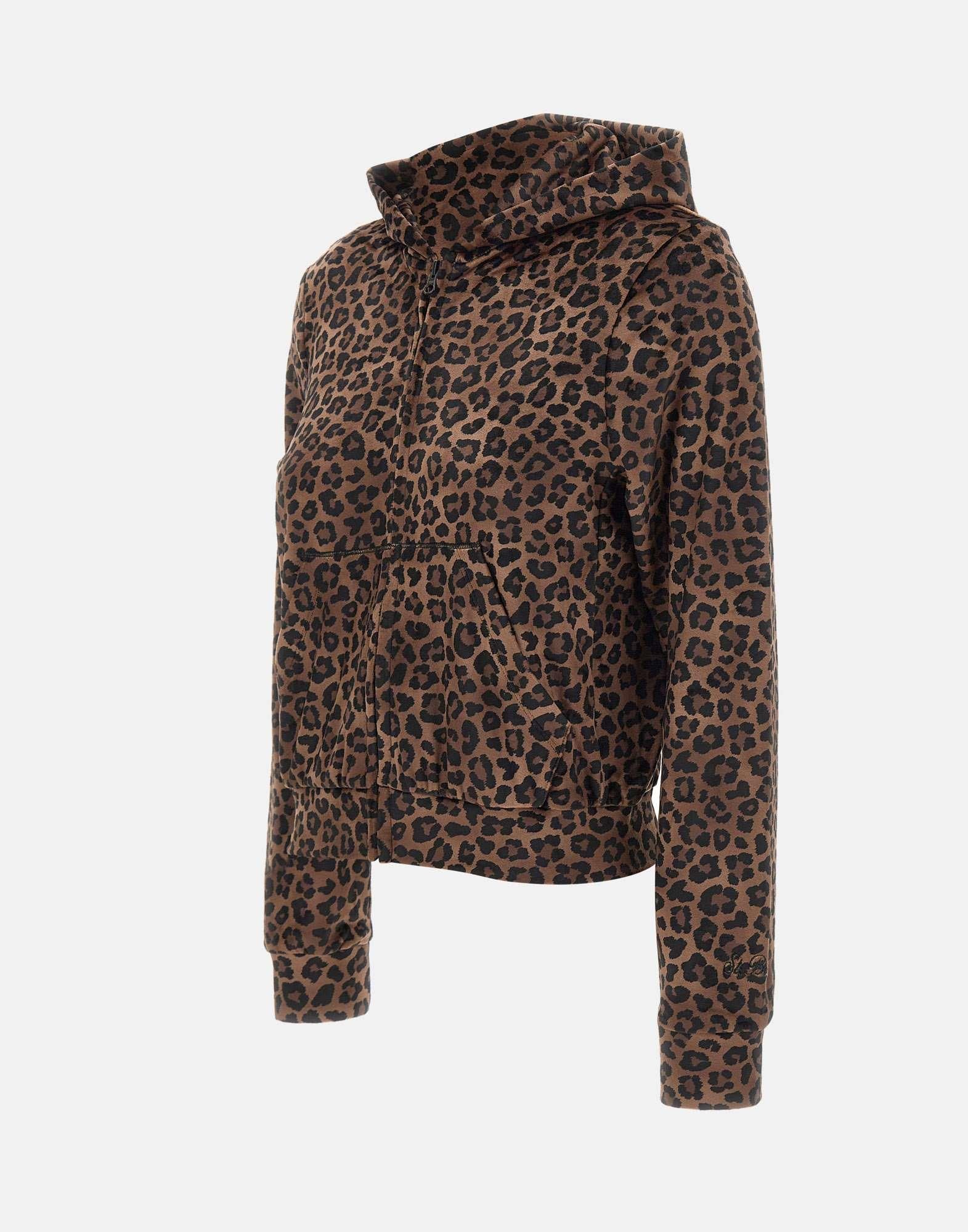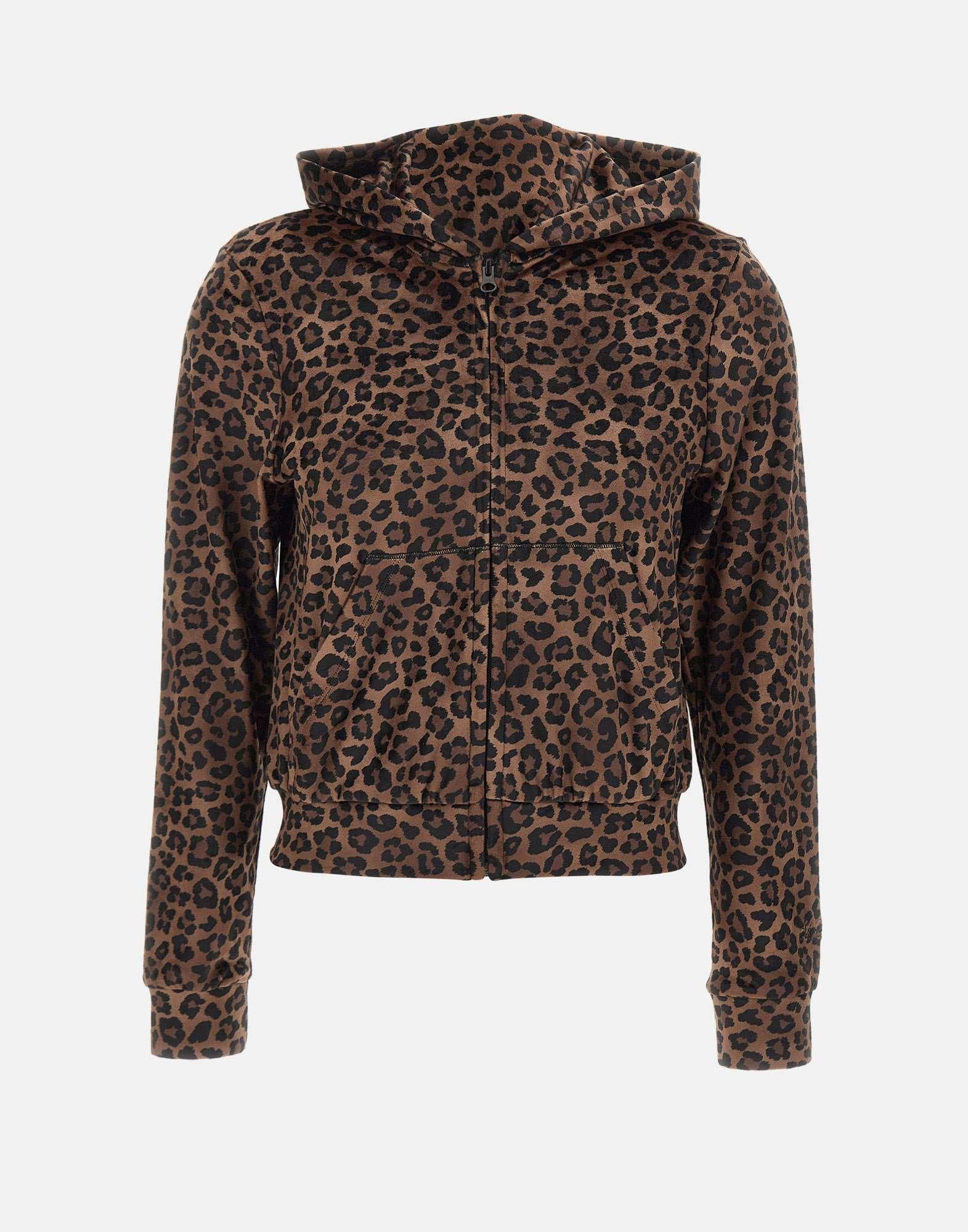 Mc2 Saint Barth "Daiana chenille" sweatshirt in black and brown animal print, made of soft, velvety chenille. The hooded design, zip closure, kangaroo pockets, and long sleeves combine comfort and contemporary style. Ideal for casual yet sophisticated looks. Regular fit.