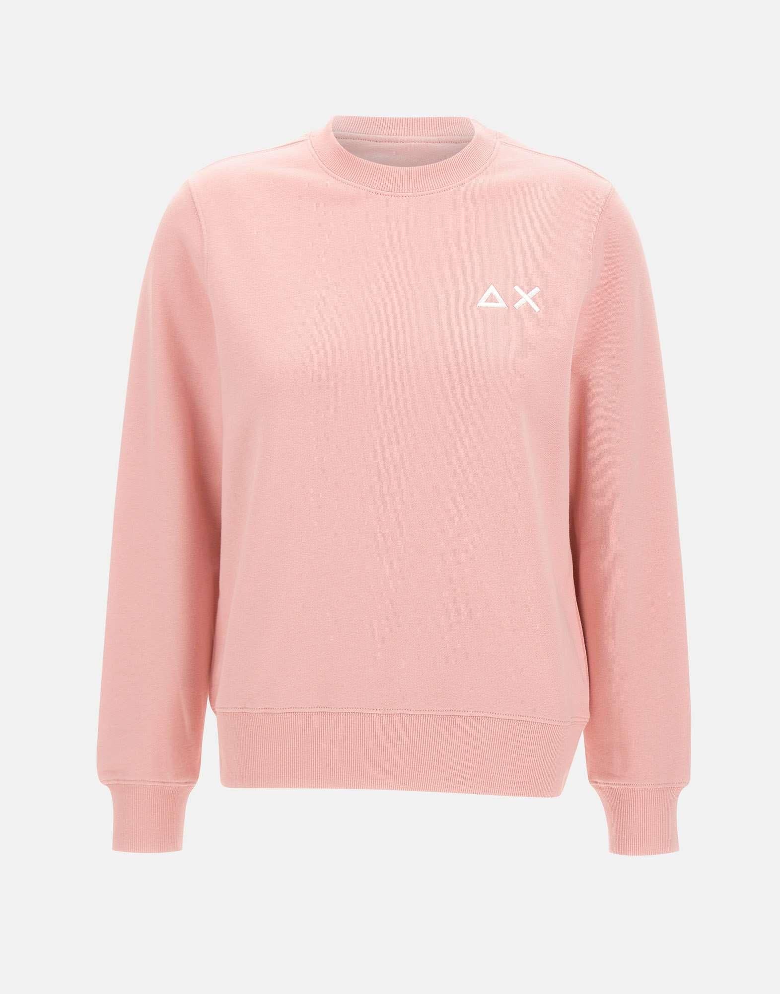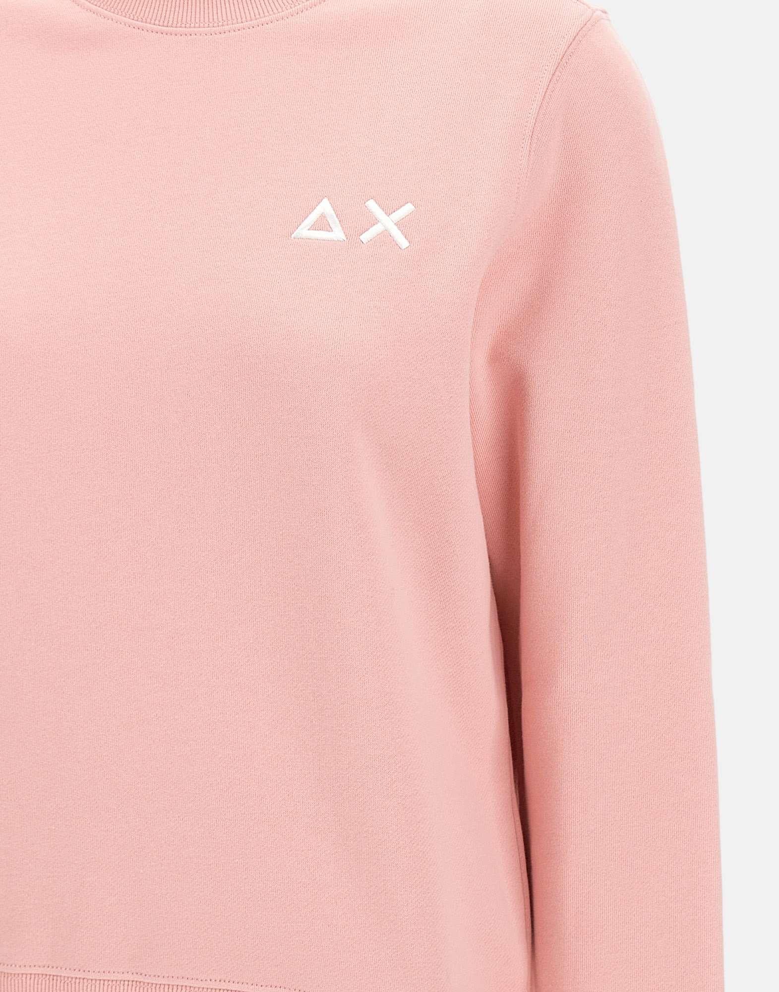 Women's Sun68 "Sweatshirt Basic Fleece" in cotton blend, pastel pink, offering a casual and comfortable look. Features long sleeves, a crew neck, and ribbed trims for a snug fit. The brushed interior ensures warmth and softness, while the embroidered logo on chest adds a refined touch. The regular fit provides ease and everyday versatility.