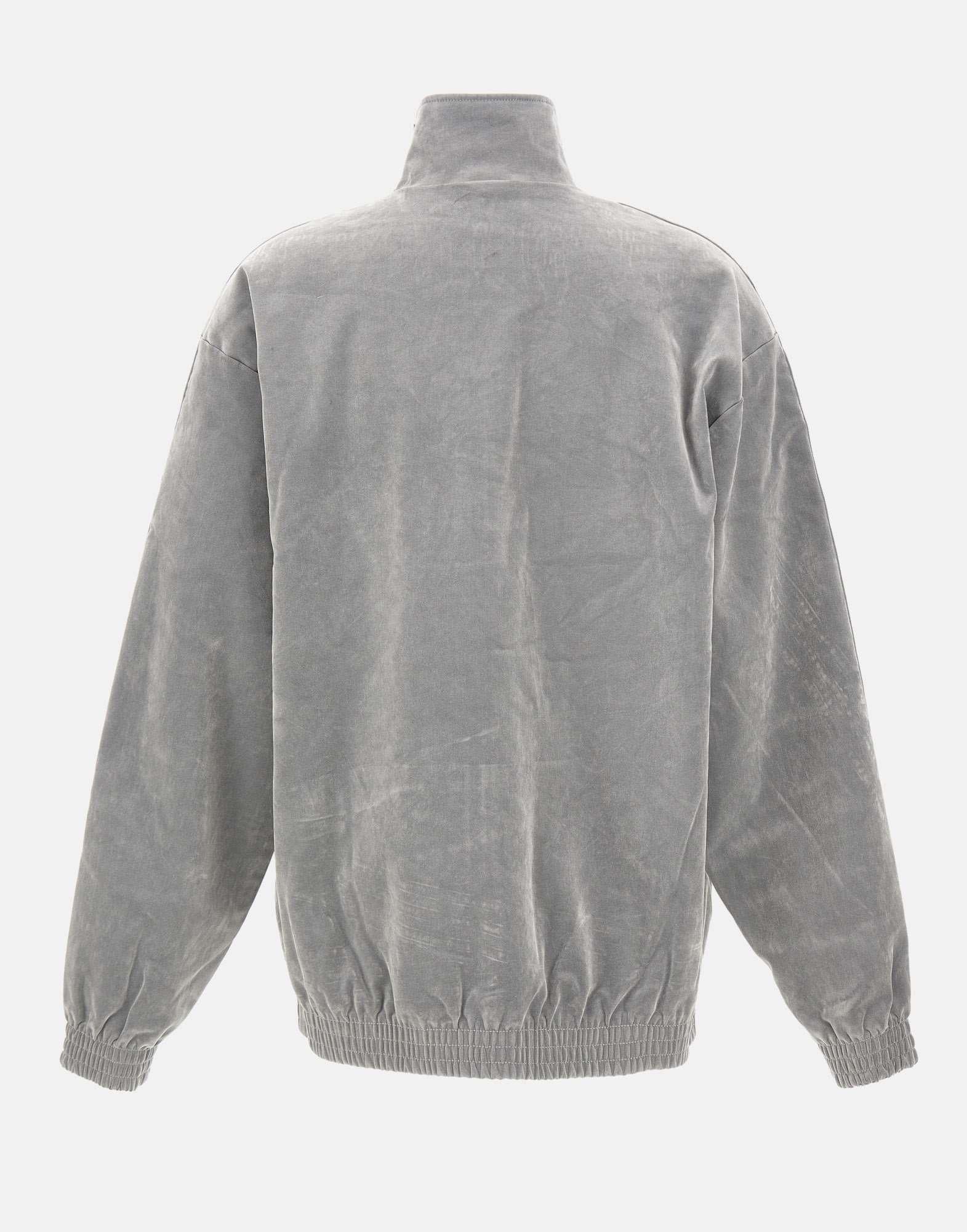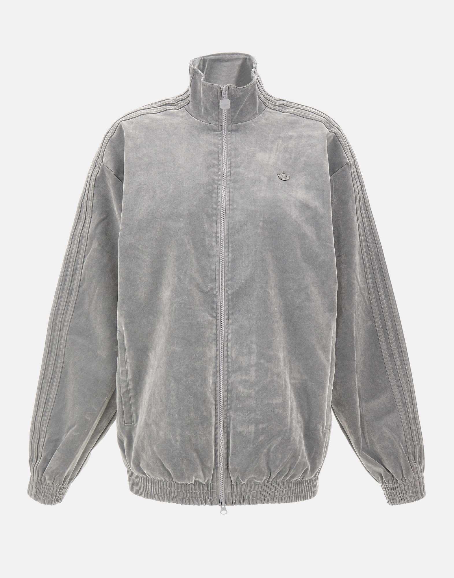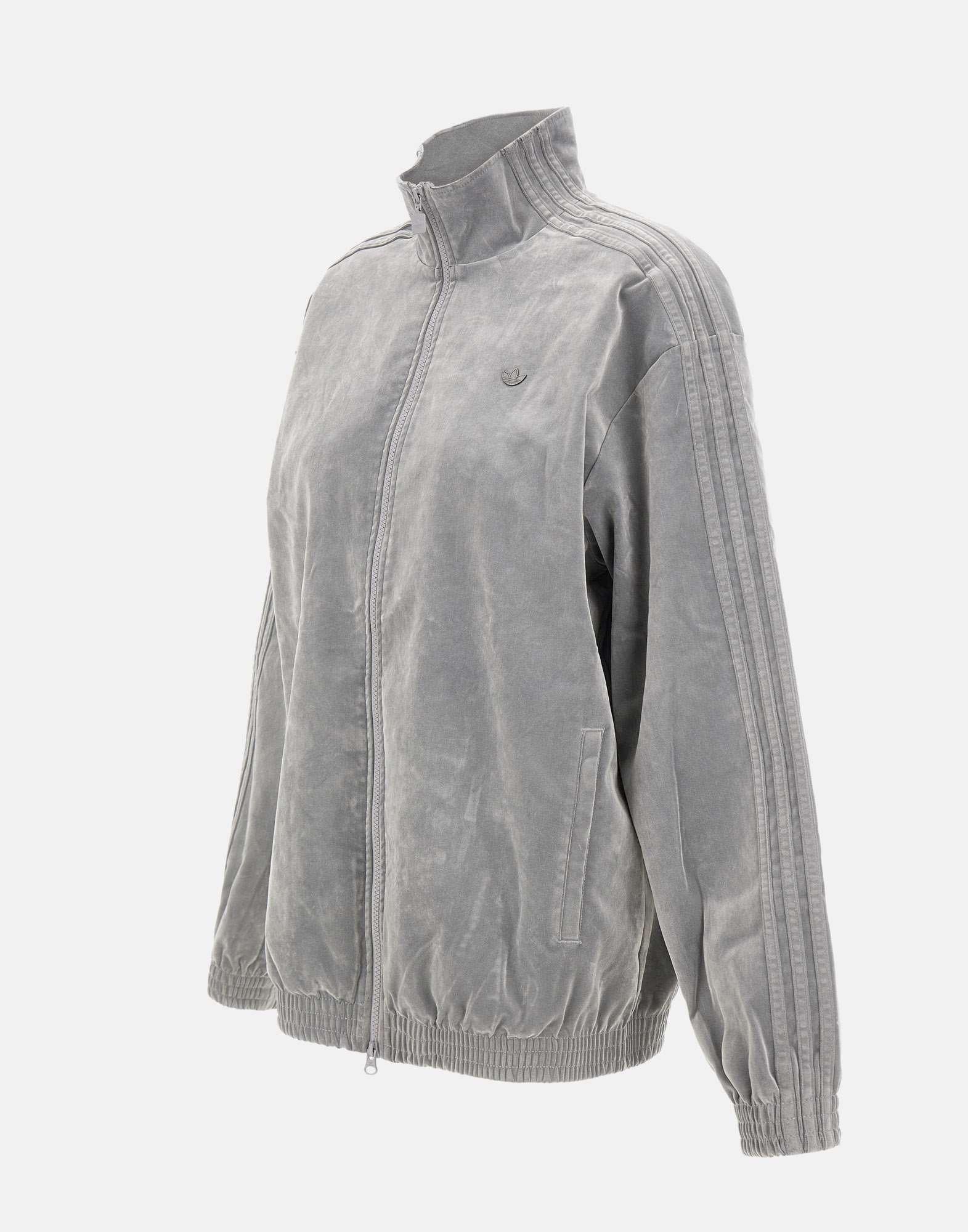 The Adidas "Tracktop" jacket, in light gray, made of chenille-effect viscose, revisits brand's iconic sporty style with a sophisticated, retro twist. Featuring iconic 3-Stripes down sleeves and an embroidered Trefoil logo on chest, it features a stand-up collar, long sleeves, a zip closure, and functional side pockets. Elasticated cuffs and hem ensure a comfortable, modern fit. Oversized fit.