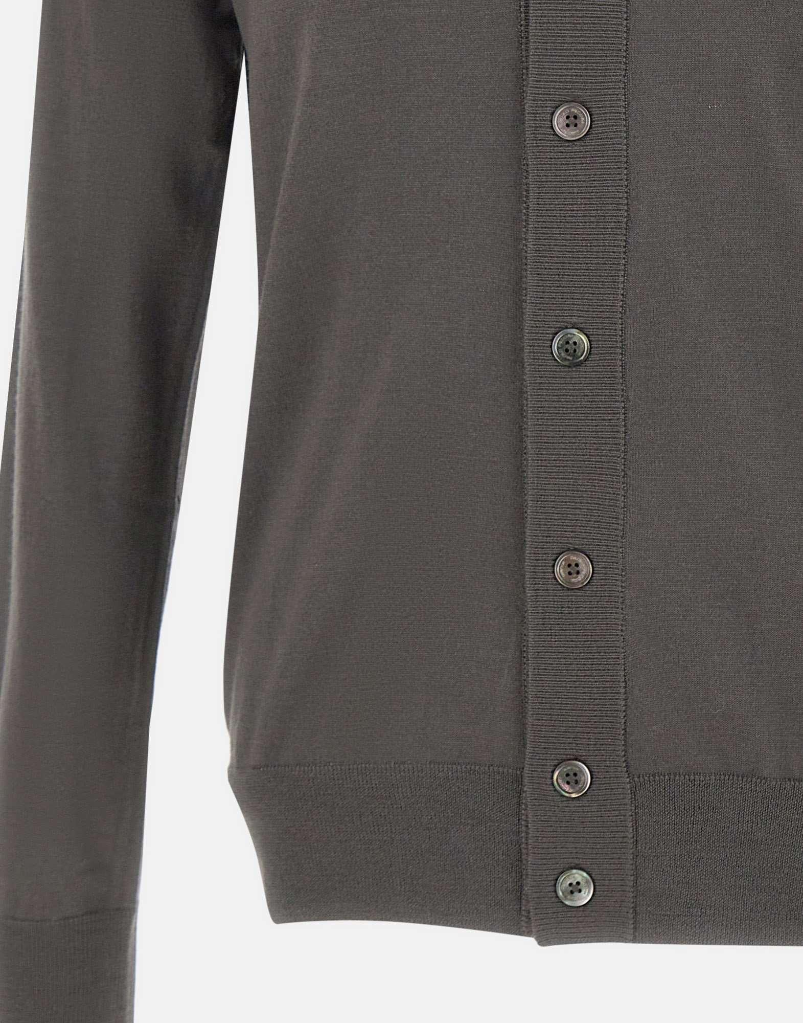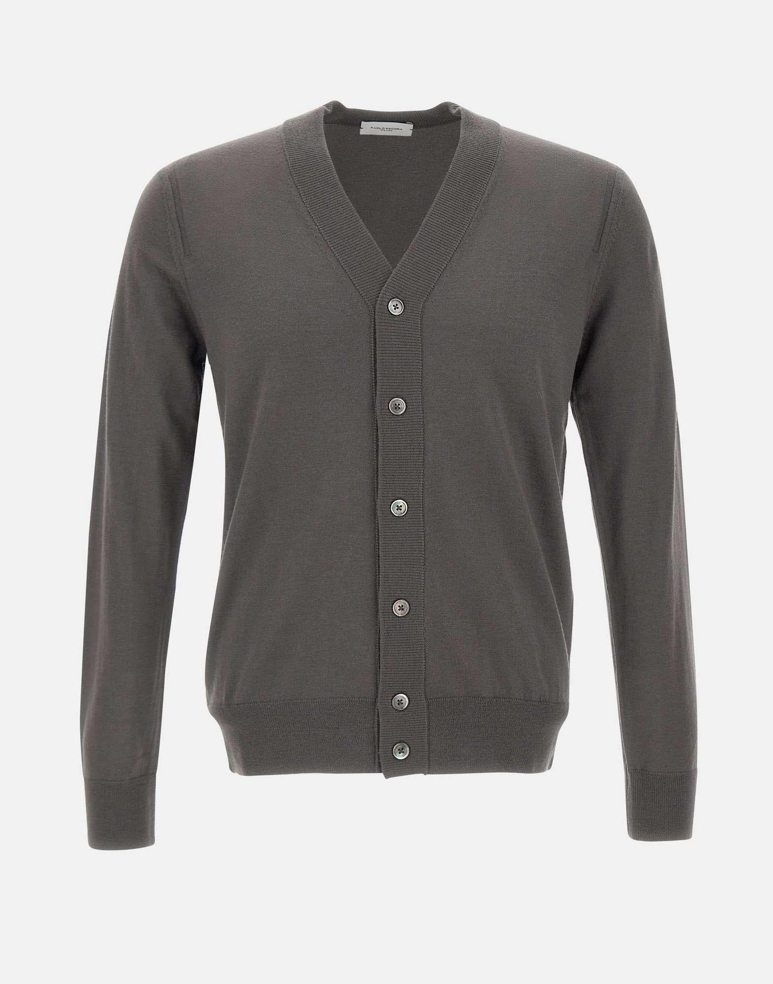 Paolo Pecora men's 16 gauge wool cardigan, grey, V-neck, long sleeves, closure with logoed mother-of-pearl buttons, super soft and warm, regular fit.