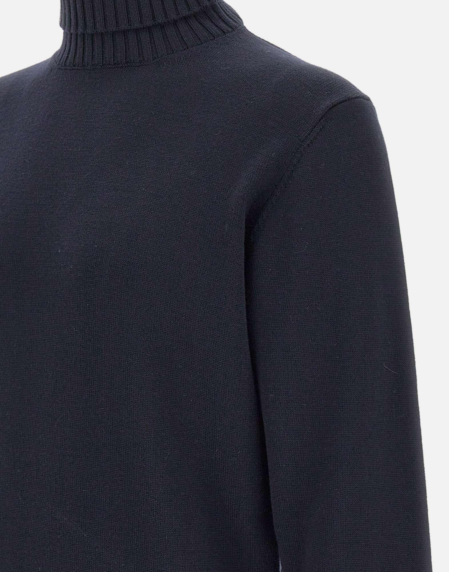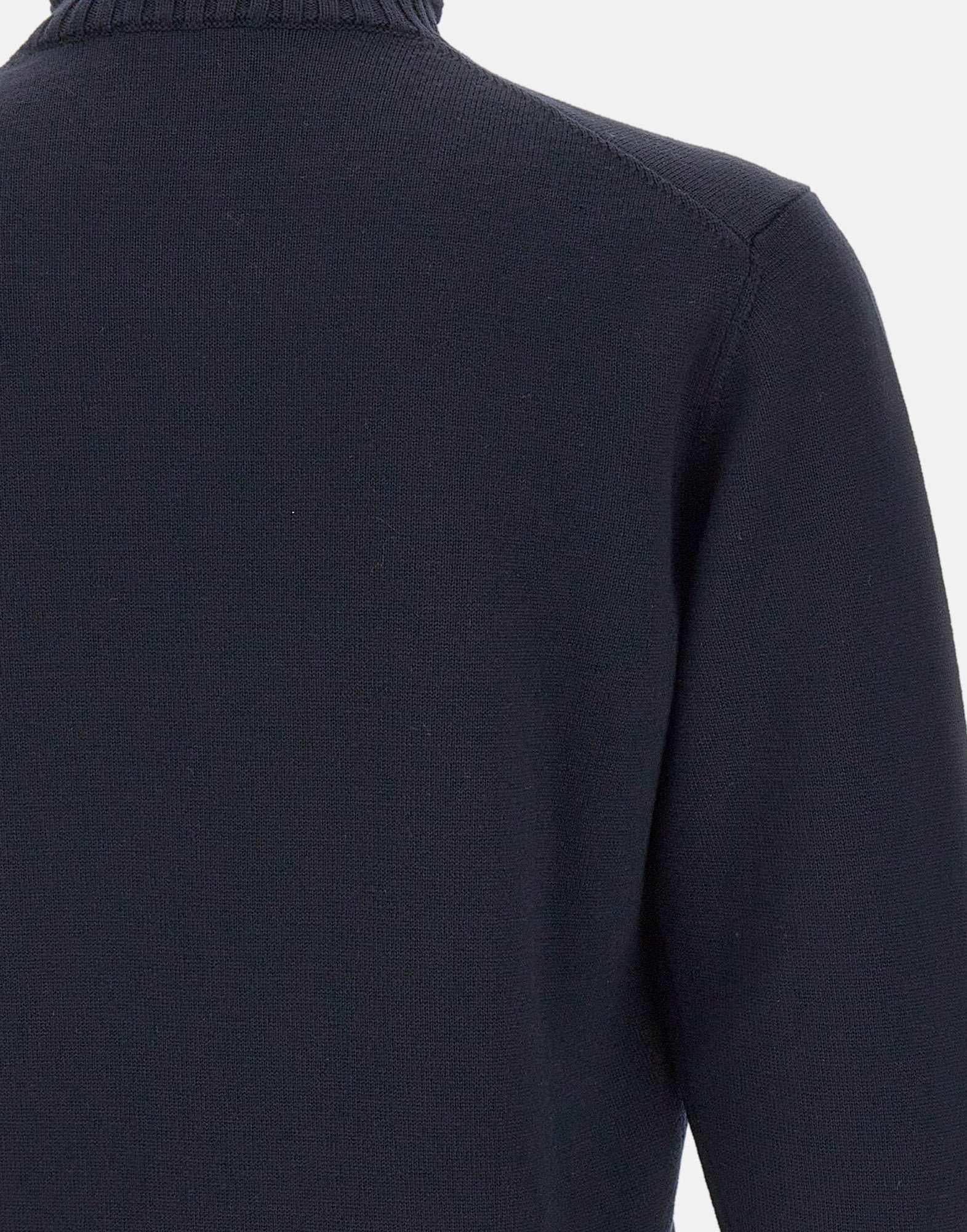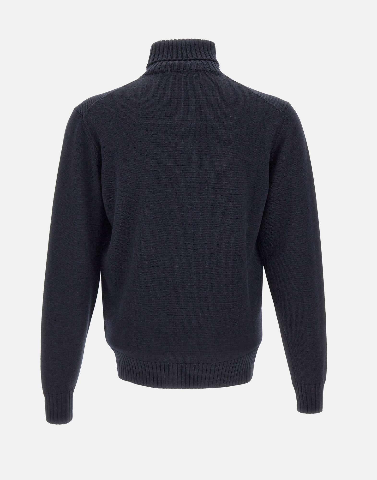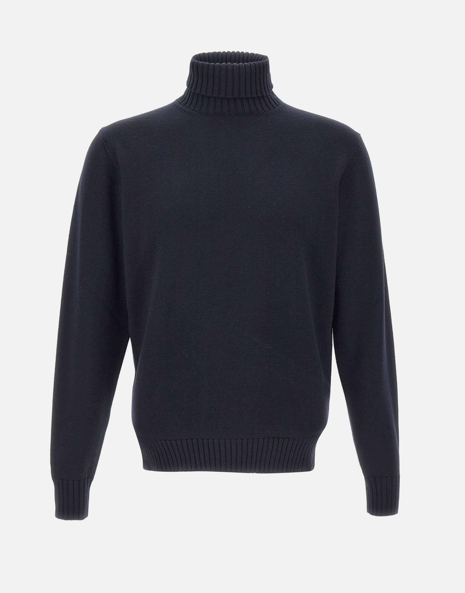 Men's turtleneck sweater by Filippo De Laurentiis in 100% extrafine merino wool, navy blue. Lightweight and comfortable, this essential piece offers warmth and understated elegance. Regular fit with high collar for extra protection and style. Ideal for layering or wearing on its own, from casual days to formal settings. Made in Italy.