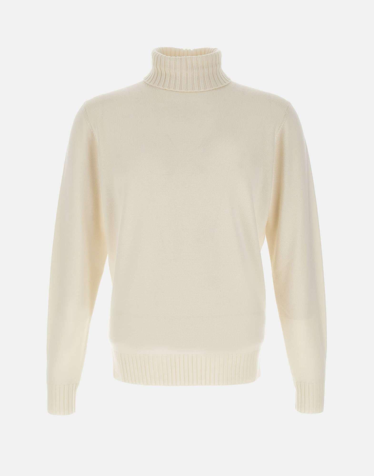 Men's turtleneck by Filippo De Laurentiis in 100% extra fine merino wool, in a soft milk white shade. Featuring ribbed high neck, cuffs and hem, this sweater is warm, breathable and exceptionally comfortable. Regular fit. A timeless wardrobe essential with refined Italian craftsmanship. Made in Italy.